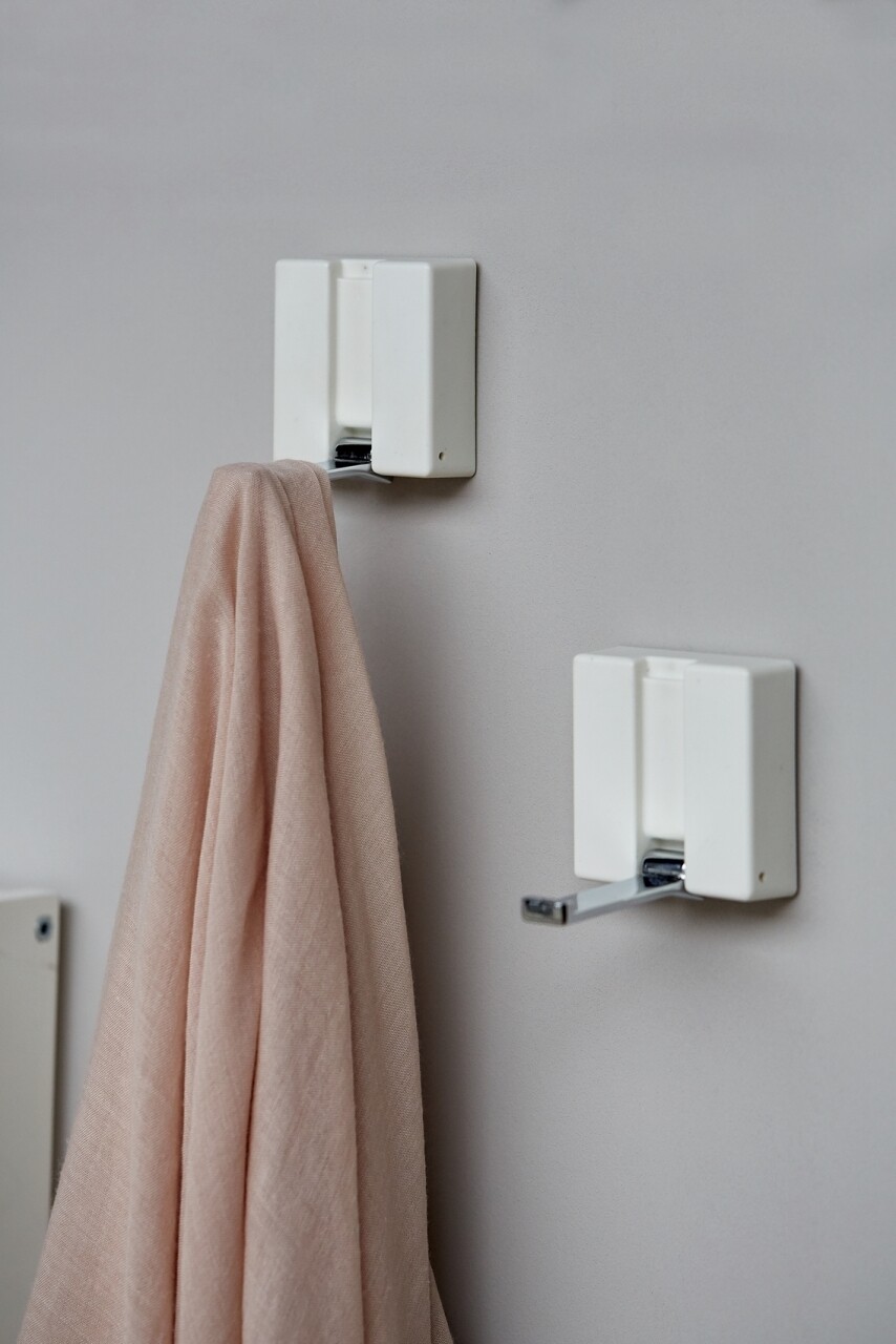 Agatatoare cuier pliabila Alpha, WENKO, 8 x 8 x 2.5 cm, metal cromat/plastic/magnet, alb/argintiu
