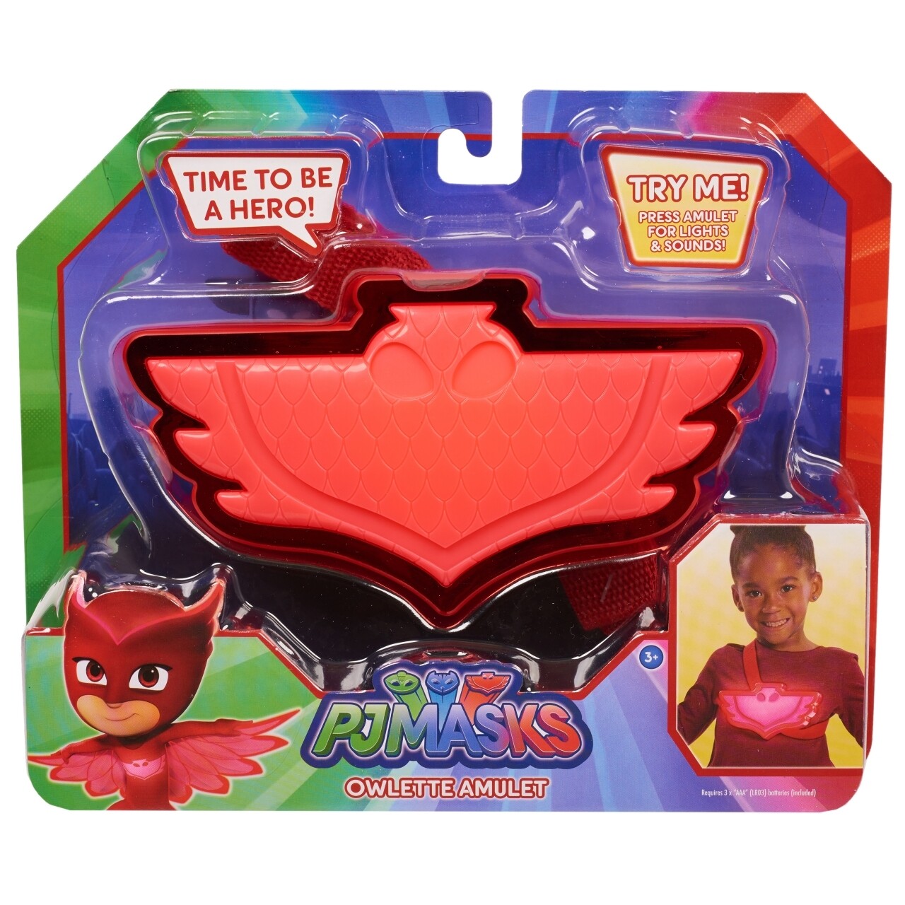 Acum, fanii Eroi in Pijama pot merge in noapte pentru a salva ziua la fel ca eroii lor preferati cu amuleta cu lumini si sunete! Copiii pot purta amuletele pe piept, la fel ca personajul preferat! Apasati amuleta pentru a activa efectele luminoase si pentru a reda sunete si expresii distractive din animatie! Amuletele vin cu curele reglabile.