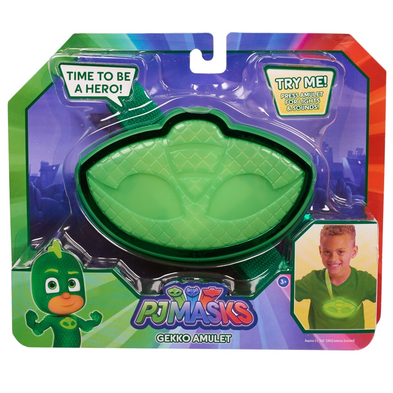 Acum, fanii Eroi in Pijama pot merge in noapte pentru a salva ziua la fel ca eroii lor preferati cu amuleta cu lumini si sunete! Copiii pot purta amuletele pe piept, la fel ca personajul preferat! Apasati amuleta pentru a activa efectele luminoase si pentru a reda sunete si expresii distractive din animatie! Amuletele vin cu curele reglabile.