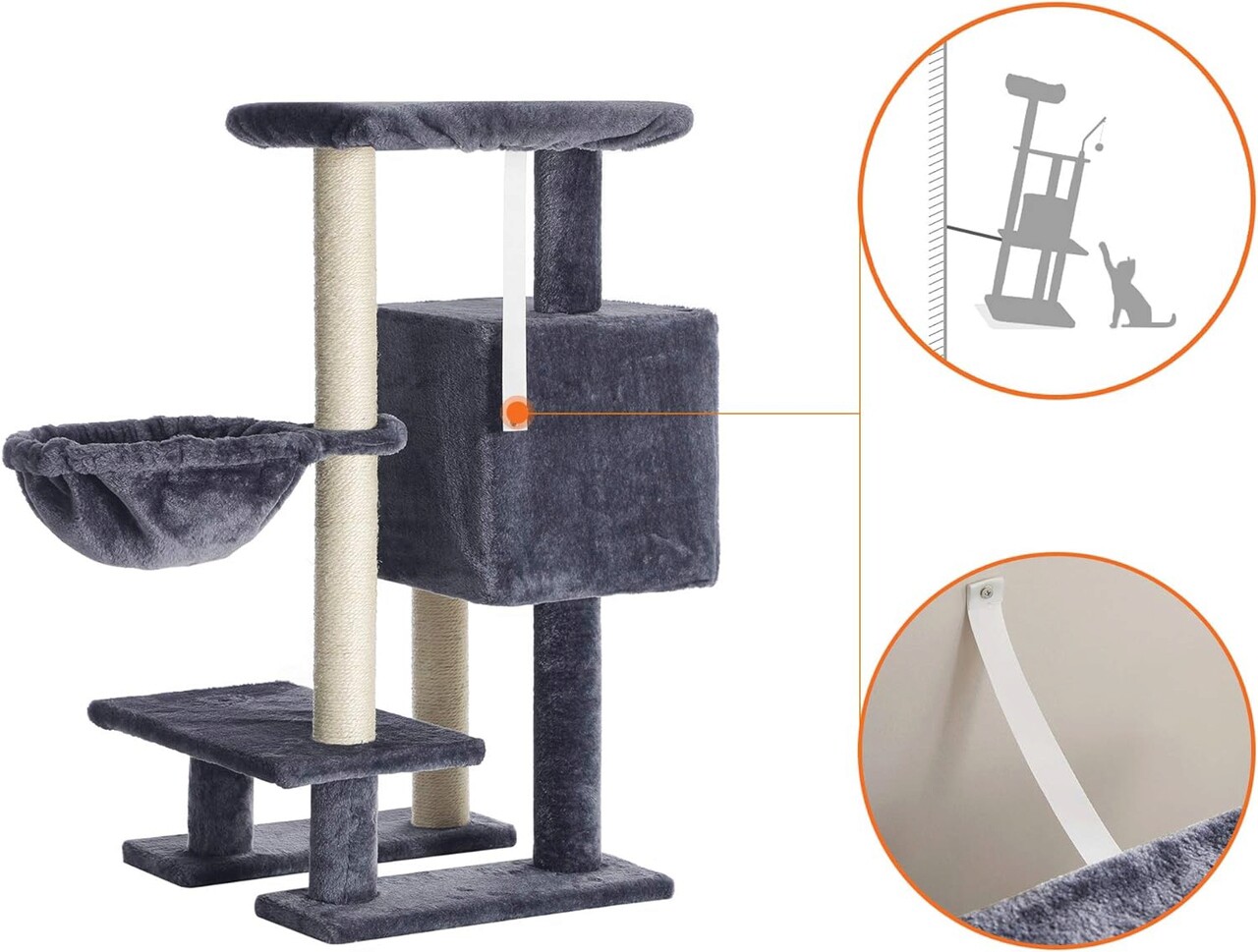 Ansamblu de joaca pisici / arbore pentru pisici Cat Condo, Feandrea, 46x41x84 cm, PAL/plus/sisal, gri inchis