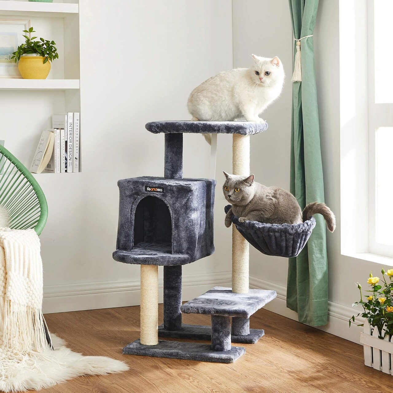 Spatiu mic, bucurie mare: Avand o baza de doar 46 x 41 cm, acest arbore pentru pisici nu ocupa mult spatiu pe podea, dar ofera pisicii tale o bucurie nesfarsita, de la catarat la zgariere si relaxare.