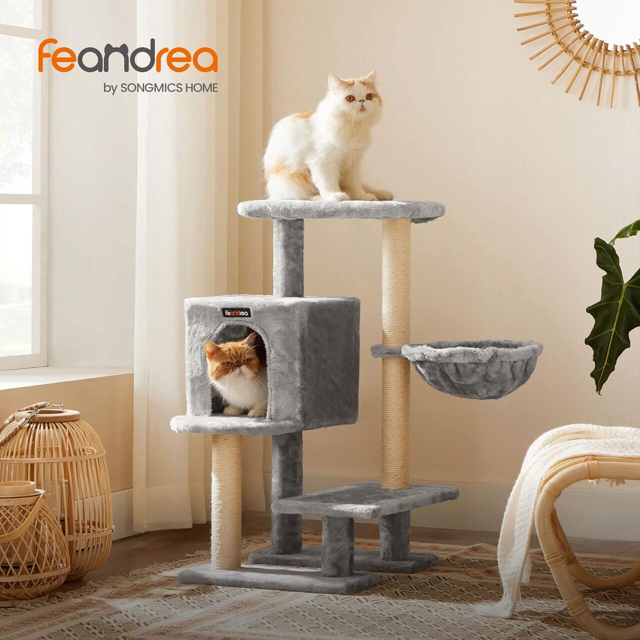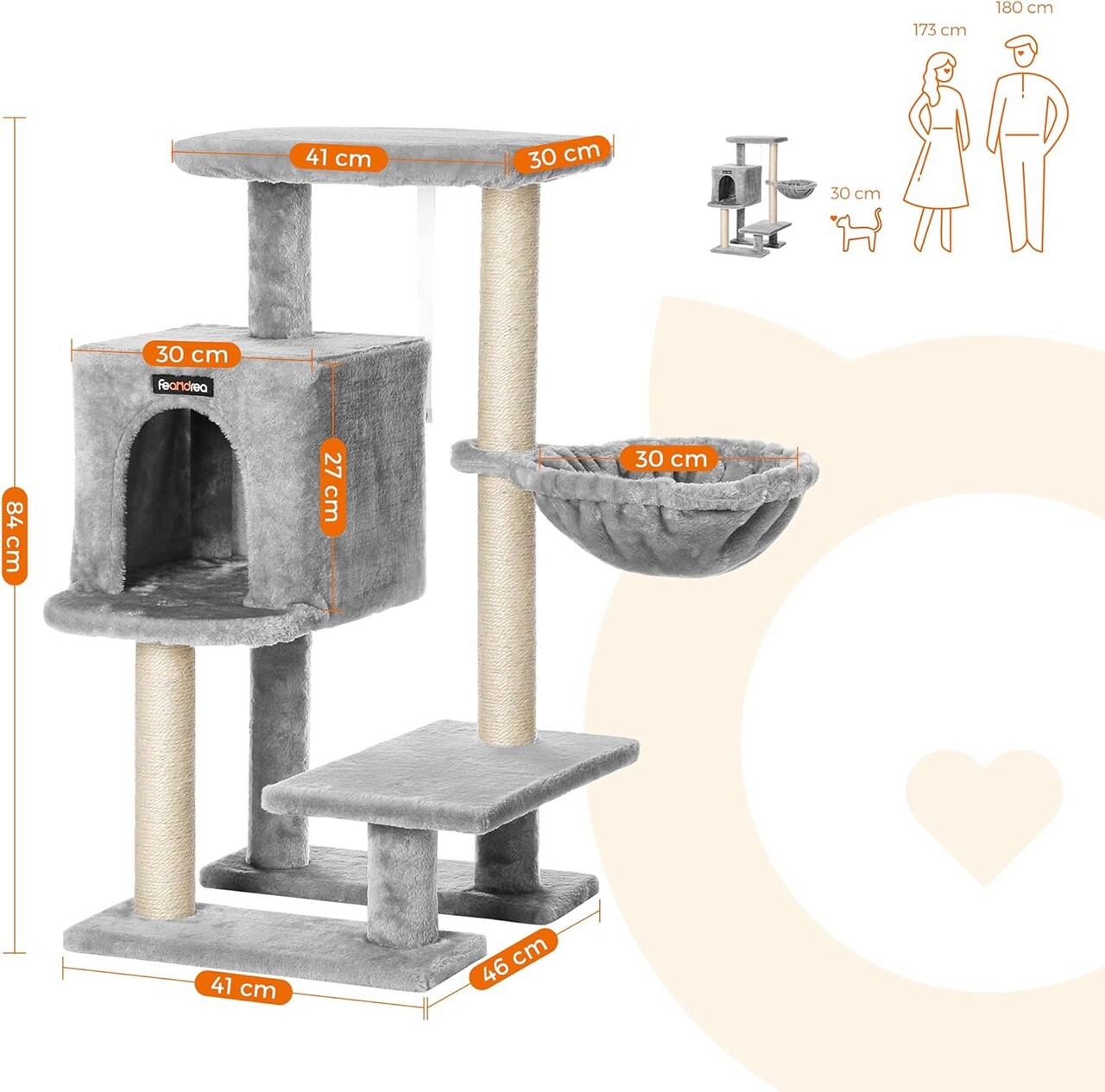 Ansamblu de joaca pisici / arbore pentru pisici Cat Condo, Feandrea, 46x41x84 cm, PAL/plus/sisal, gri deschis