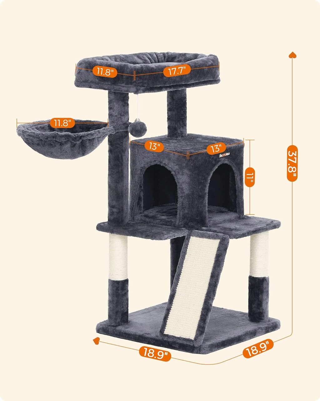 Ansamblu de joaca pisici / arbore pentru pisici, Feandrea, 48 x 48 x 96 cm, gri inchis