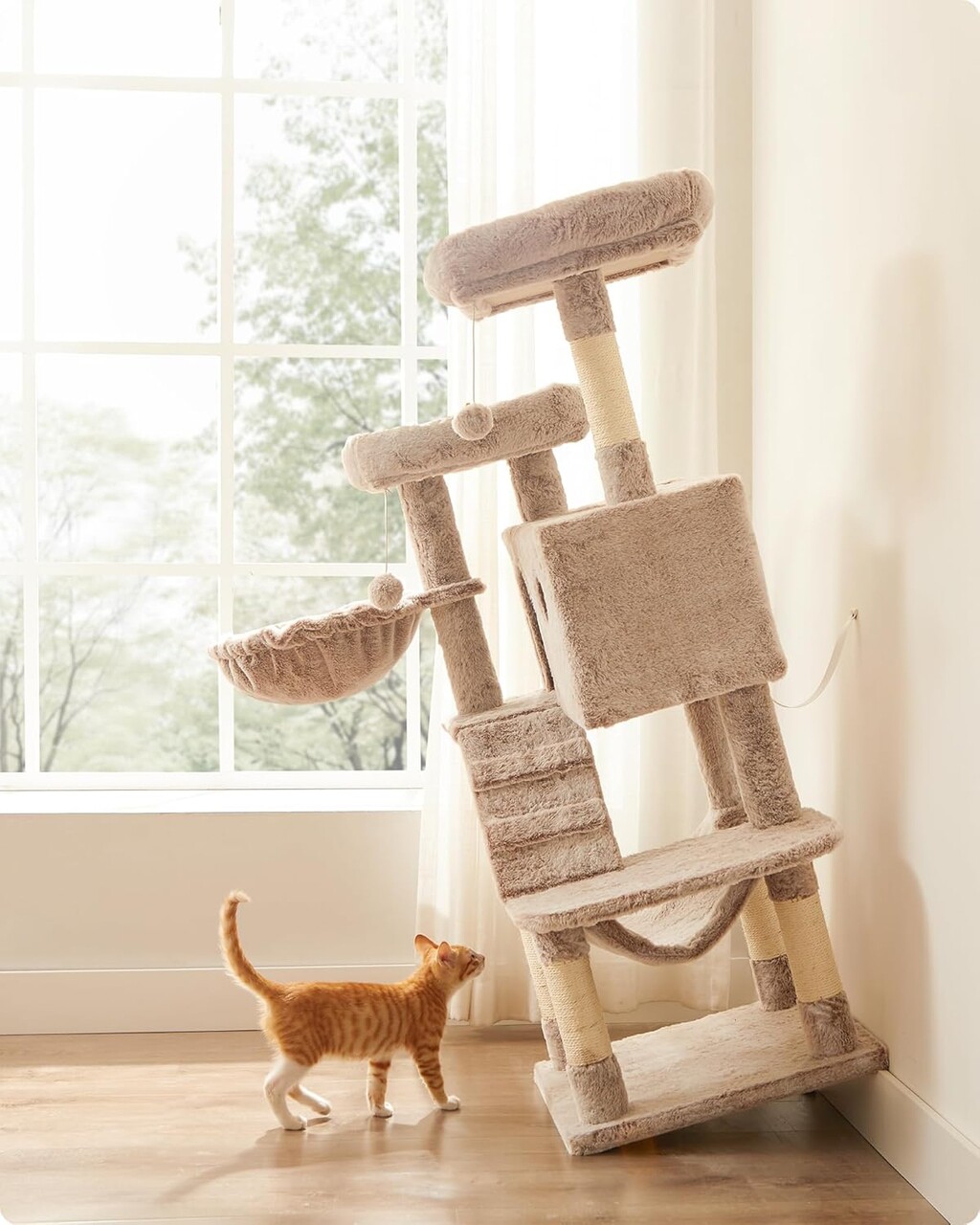 Ansamblu de joaca pisici / arbore pentru pisici, Feandrea, 49x49x135 cm, PAL/plus/sisal, bej