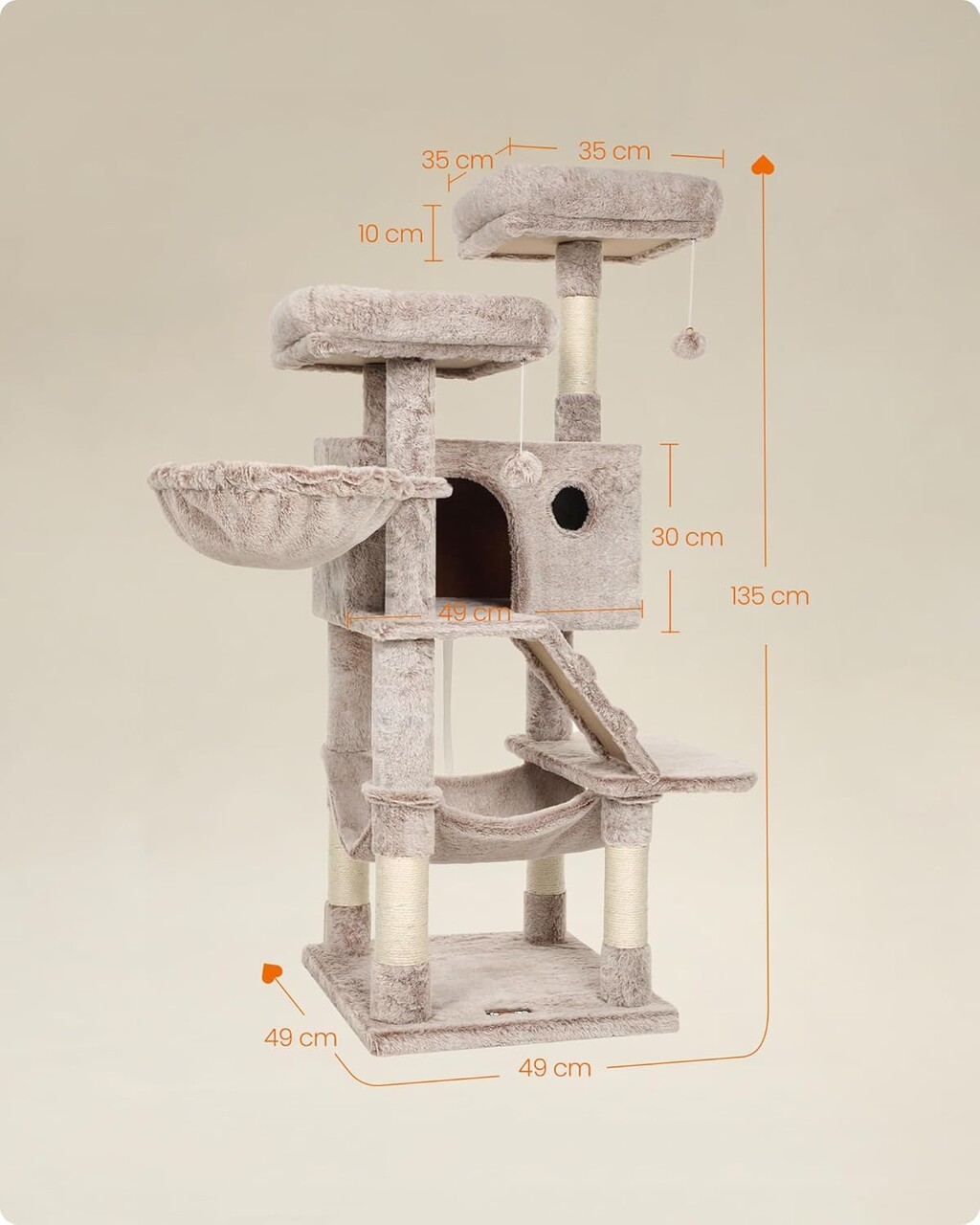 Confortul este in centrul atentiei: Acest arbore pentru pisici inalt de 135 cm este acoperit cu plus de 500 g/m² (mai moale, mai dens si mai pufos) pentru a va mentine pisica in confort