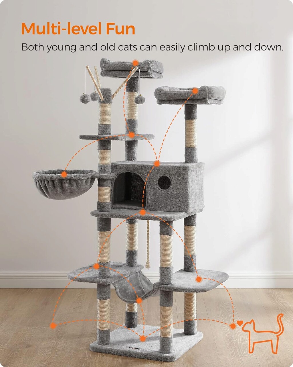 Ansamblu de joaca pisici /arbore pentru pisici, Feandrea, 50 x 50 x 164 cm, PAL/sisal, gri deschis