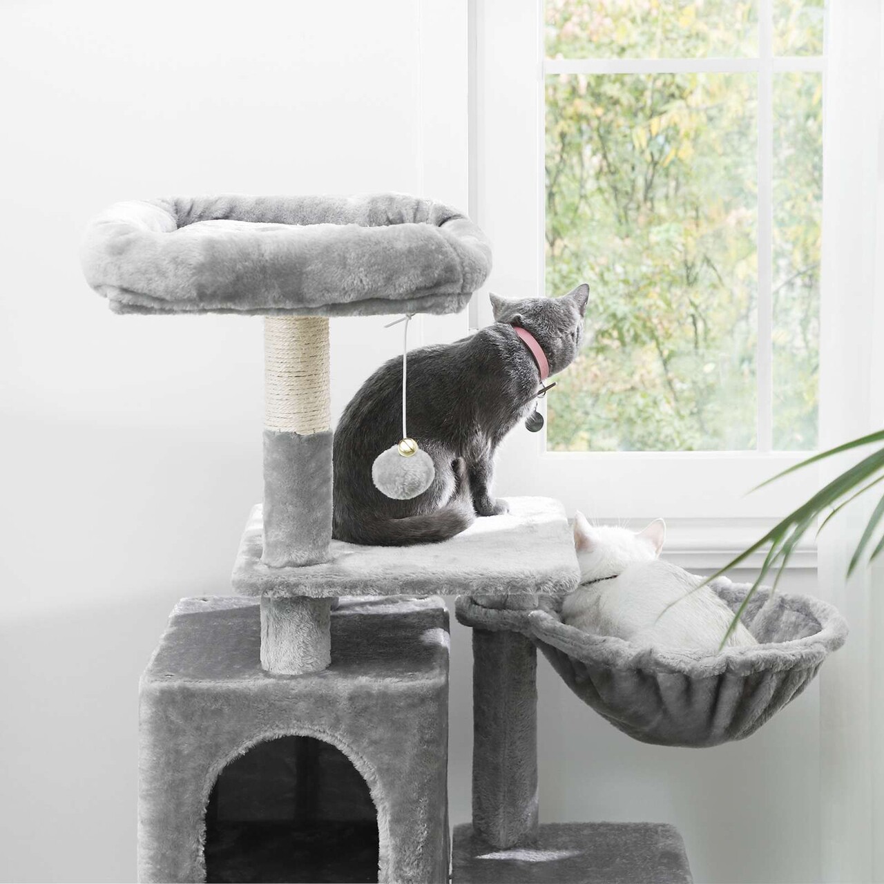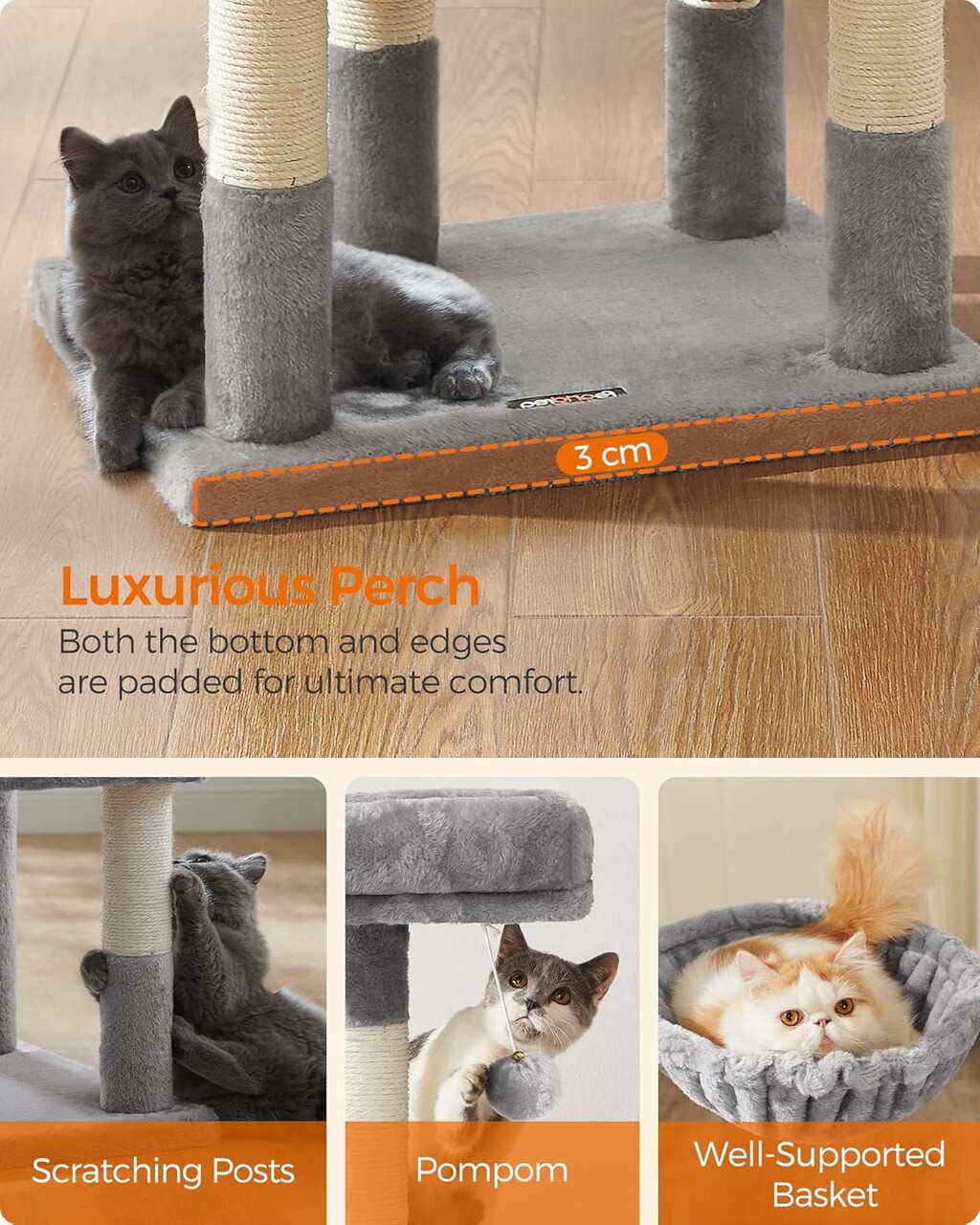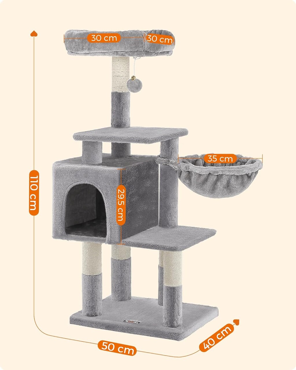 Ansamblu de joaca pisici / arbore pentru pisici, Feandrea, 50x40x110 cm, PAL/plus/sisal, gri deschis