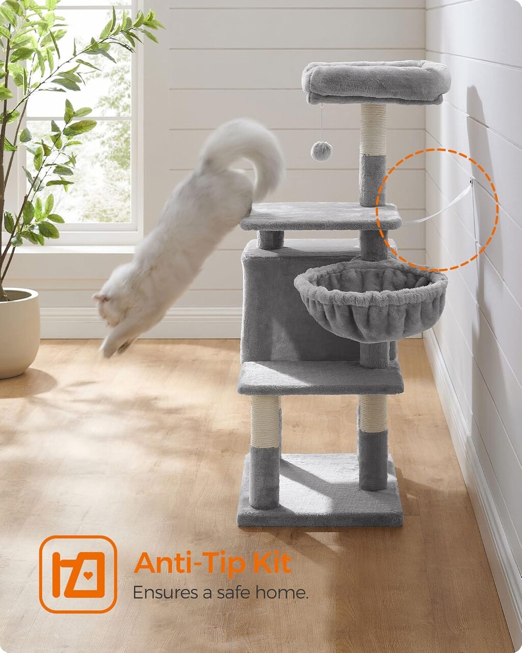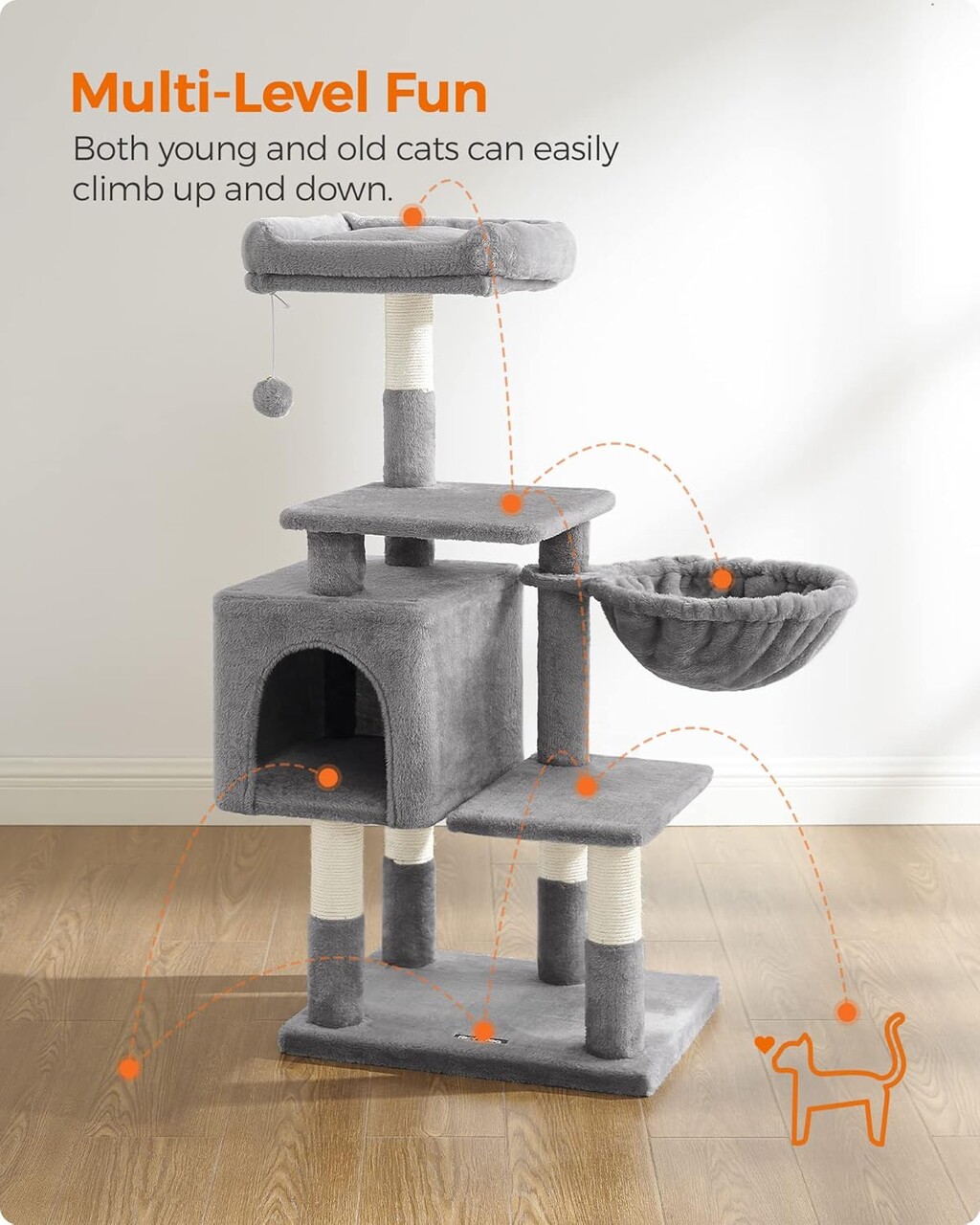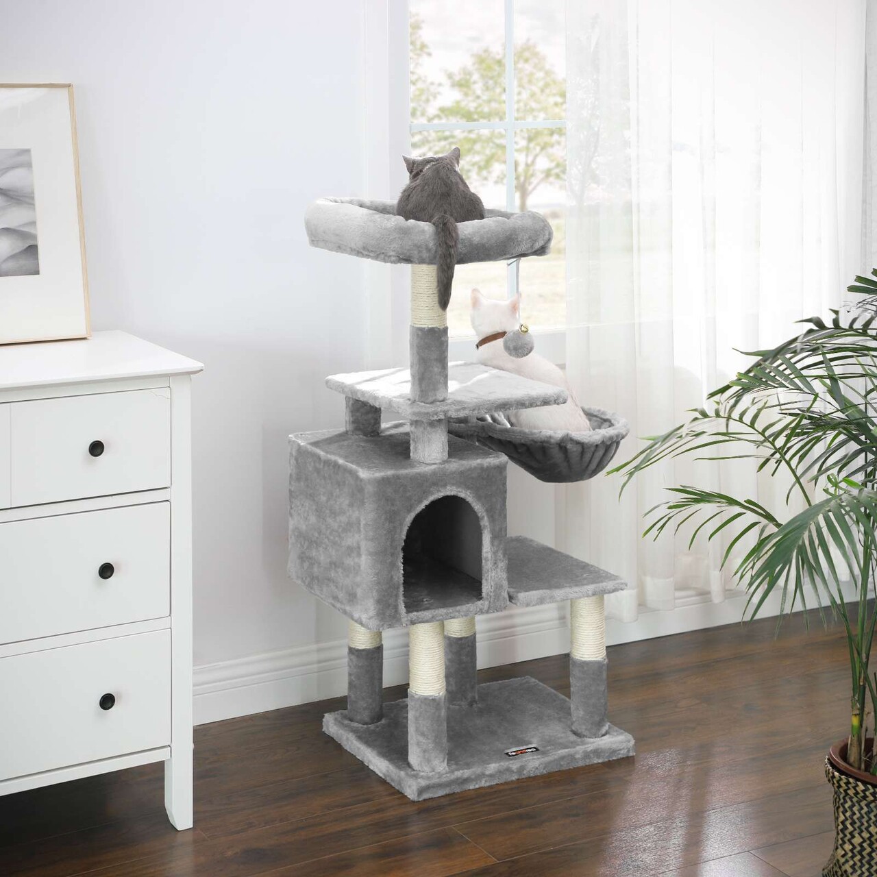 Ansamblu de joaca pisici / arbore pentru pisici, Feandrea, 50x40x110 cm, PAL/plus/sisal, gri deschis