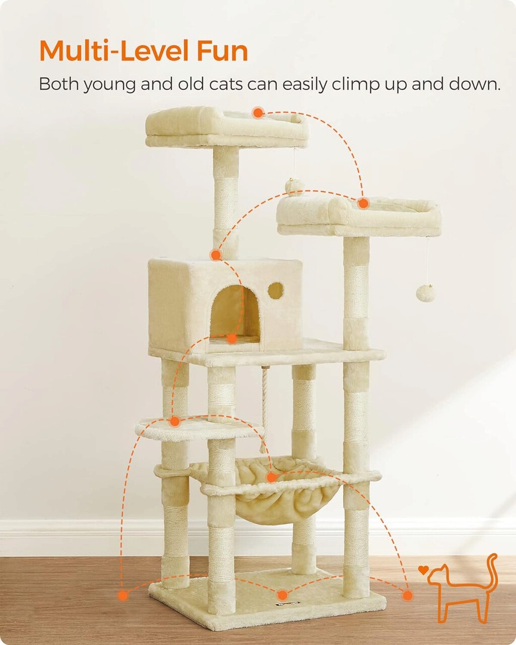 Ansamblu de joaca pisici / arbore pentru pisici, Feandrea, 55 x 45 x 143 cm, bej