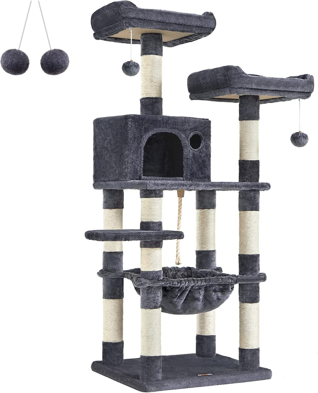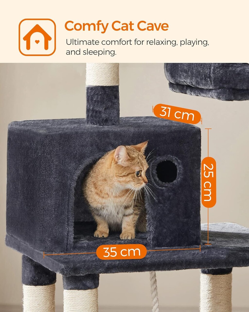 Ansamblu de joaca pisici / arbore pentru pisici, Feandrea, 55x45x143 cm, PAL/plus/sisal, gri inchis