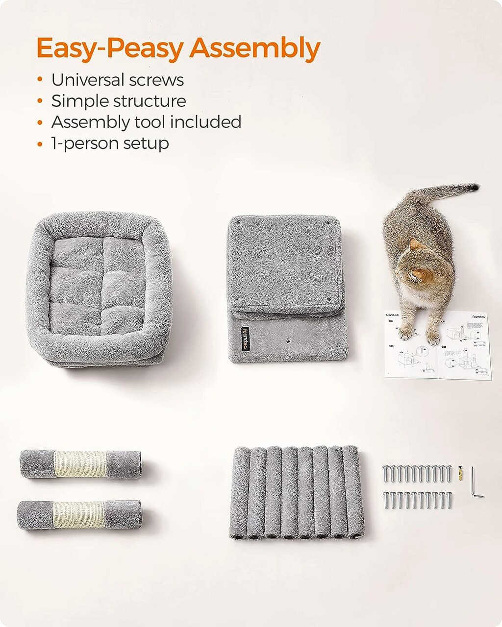 Usor de asamblat Datorita structurii simplificate, puteti monta singur acest turn pentru pisici de interior in doar cativa pasi!