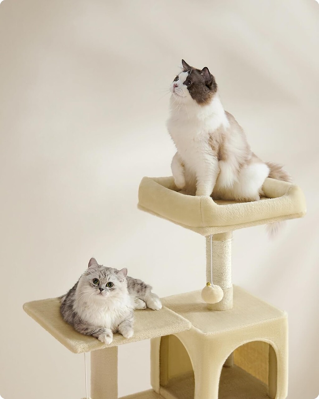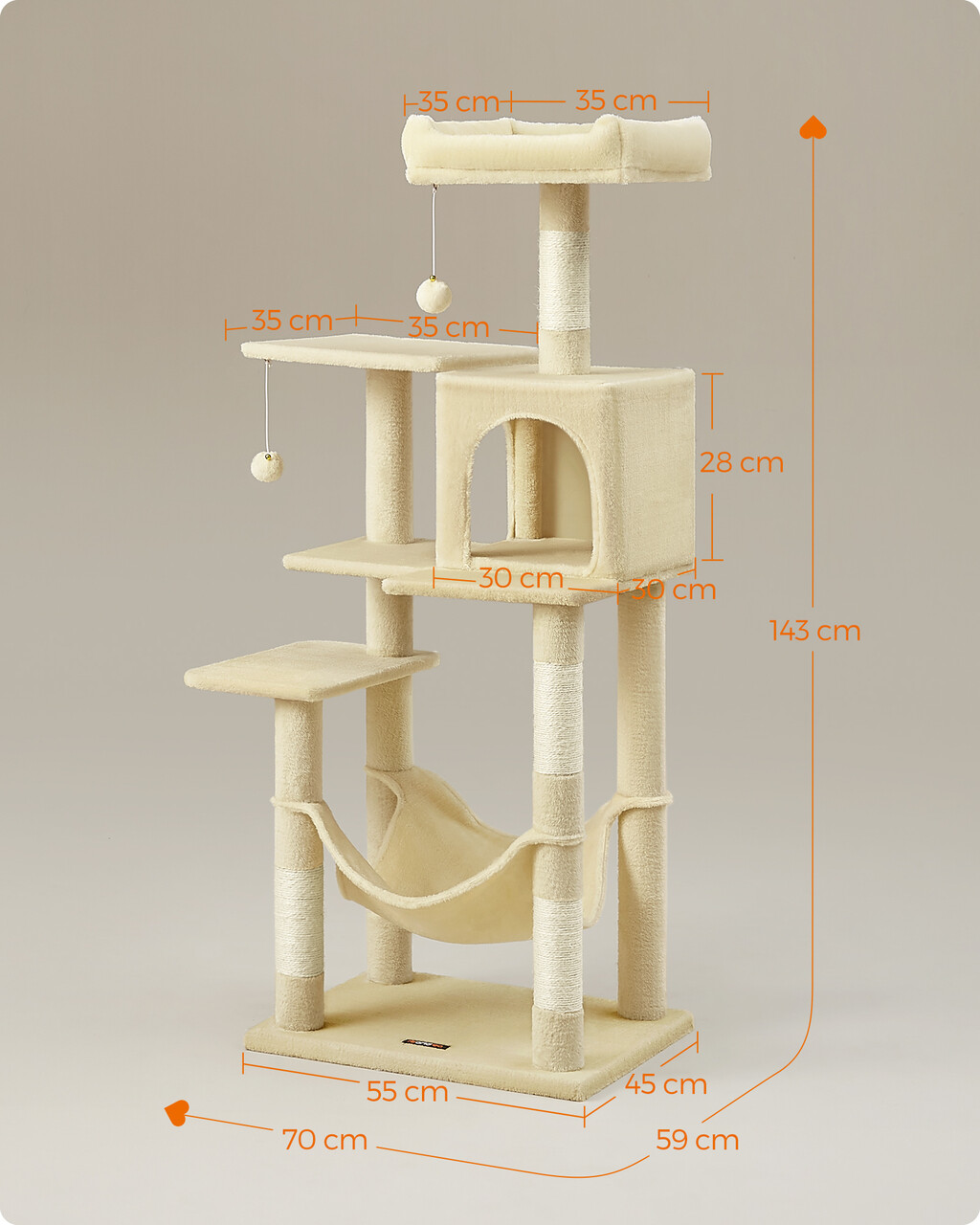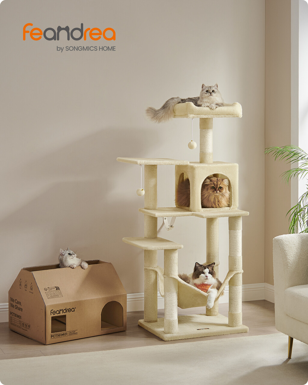 Ansamblu de joaca pisici / arbore pentru pisici, Feandrea, cu rampa pentru zgariat, 55x45x143 cm, PAL/plus/sisal, bej