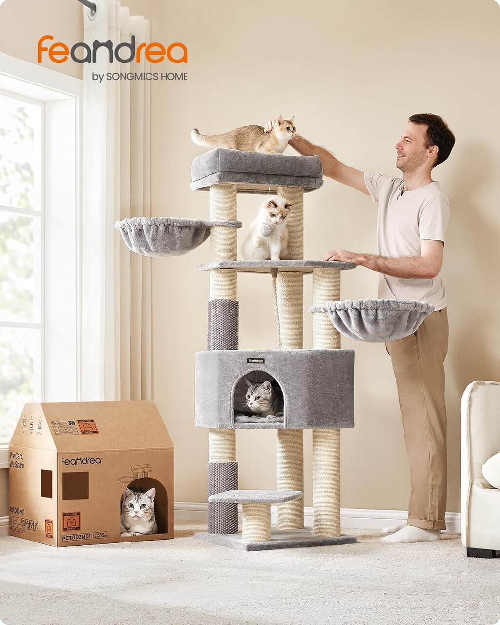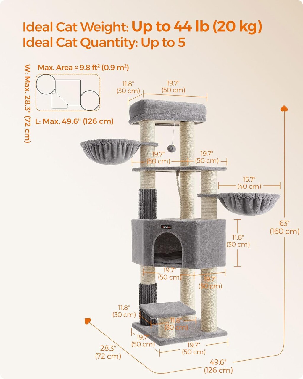 Stabil si sigur Avand o baza ranforsata de 50 x 50 cm, stalpi grosi cu diametrul de 11,1 cm si un kit anti-inclinare pentru mai multa siguranta, acest turn pentru pisici tine cont de siguranta pisicilor dvs.