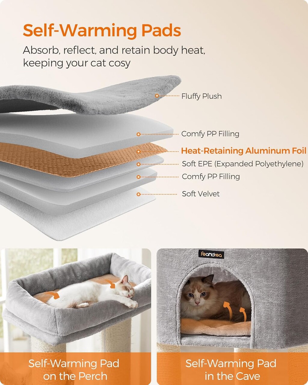 Usor de curatat Acoperisul pernei pentru pisici si covorul din pestera pentru pisici sunt detasabile si lavabile pentru o curatare usoara, astfel incat este usor sa mentineti un spatiu igienic pentru pisicile dvs.