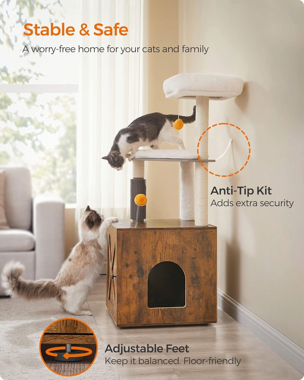 Condo pentru pisici 2 in 1 Aceasta combinatie de mobilier pentru copac si litiera pentru pisici ofera pisicilor dvs. un spatiu dedicat pe care sa il numeasca al lor, totul in timp ce se potriveste convenabil intr-un colt de 52 x 52 cm - o adevarata solutie de economisire a spatiului.
