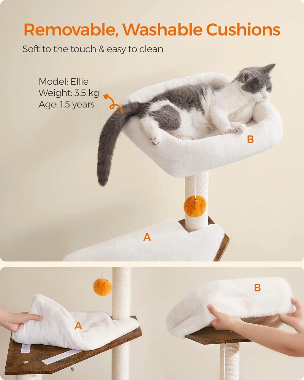 Moale si confortabil Pervazul superior si platforma sunt prevazute cu perne care sunt acoperite cu plus de 500 g/m² - mai dens, mai moale si mai pufos decat plusul obisnuit. Micutul tau blanos va adora sa atipeasca si sa se ghemuiasca in aceste perne moi.