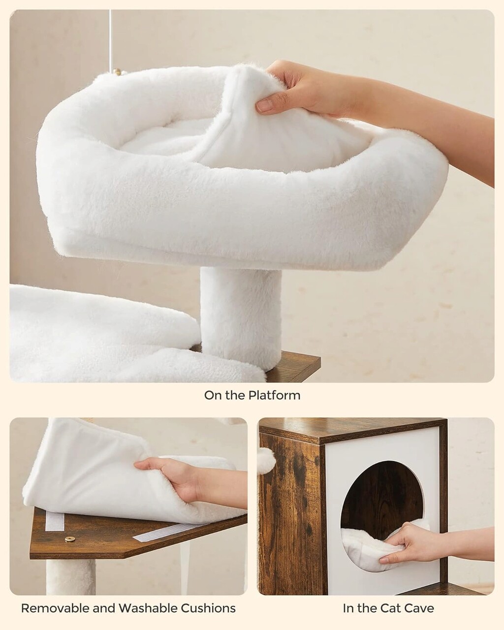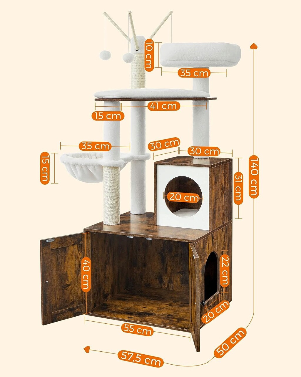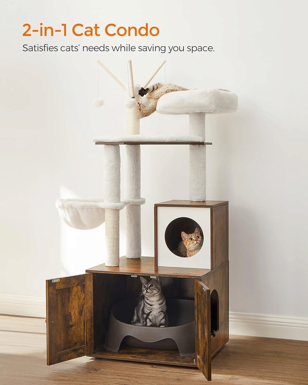 Mobilier pentru pisici 2 in 1: combinatia dintre arborele pentru pisici si litiera ofera pisicii dvs. un loc pentru a privi, a se juca, a se relaxa si a-si face nevoile, in acelasi timp ocupand putin spatiu.