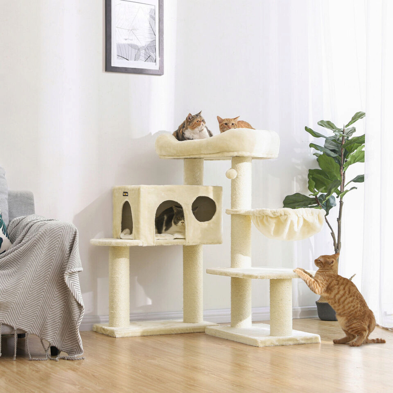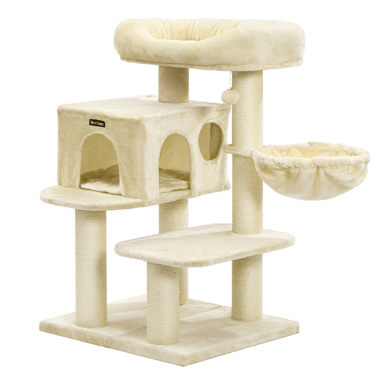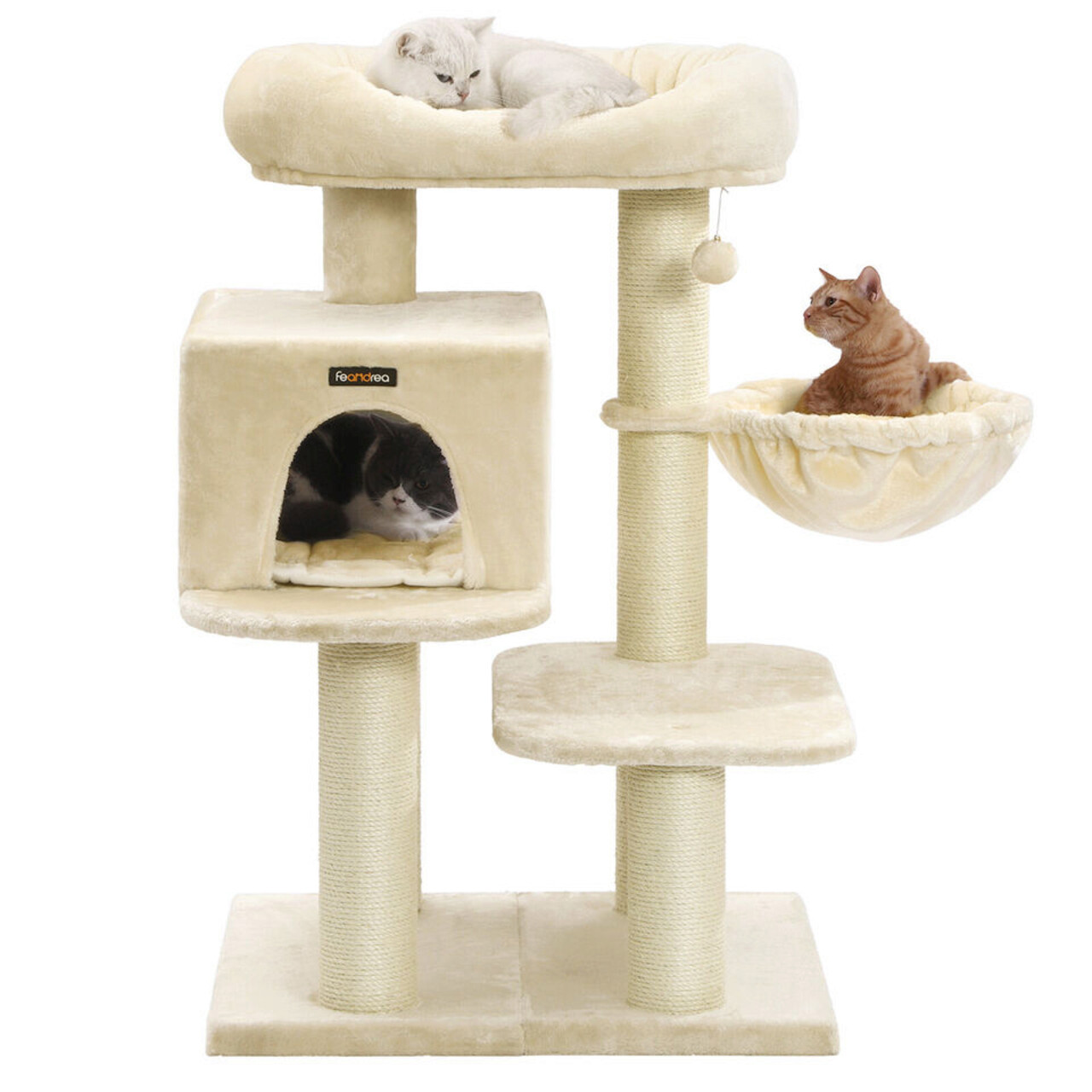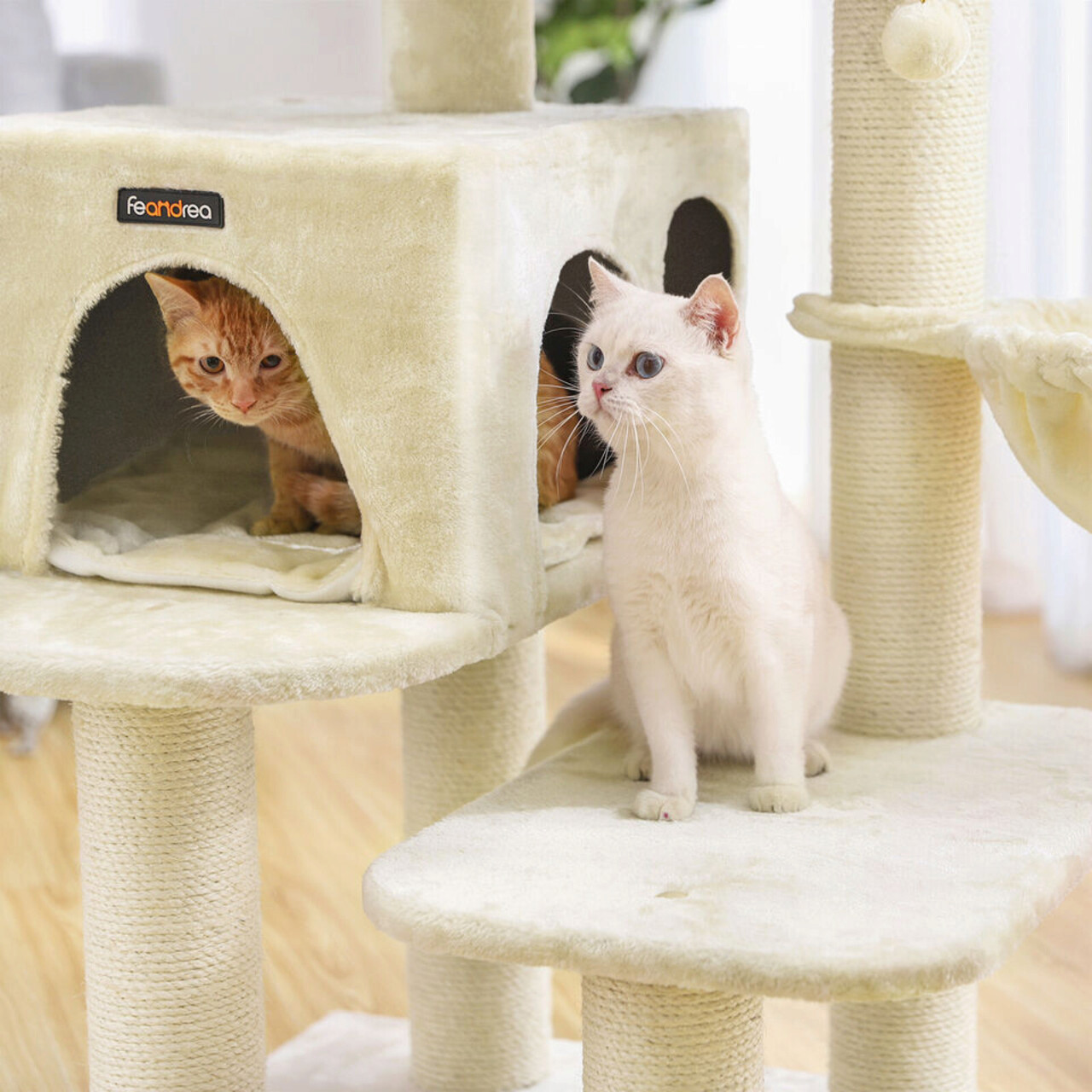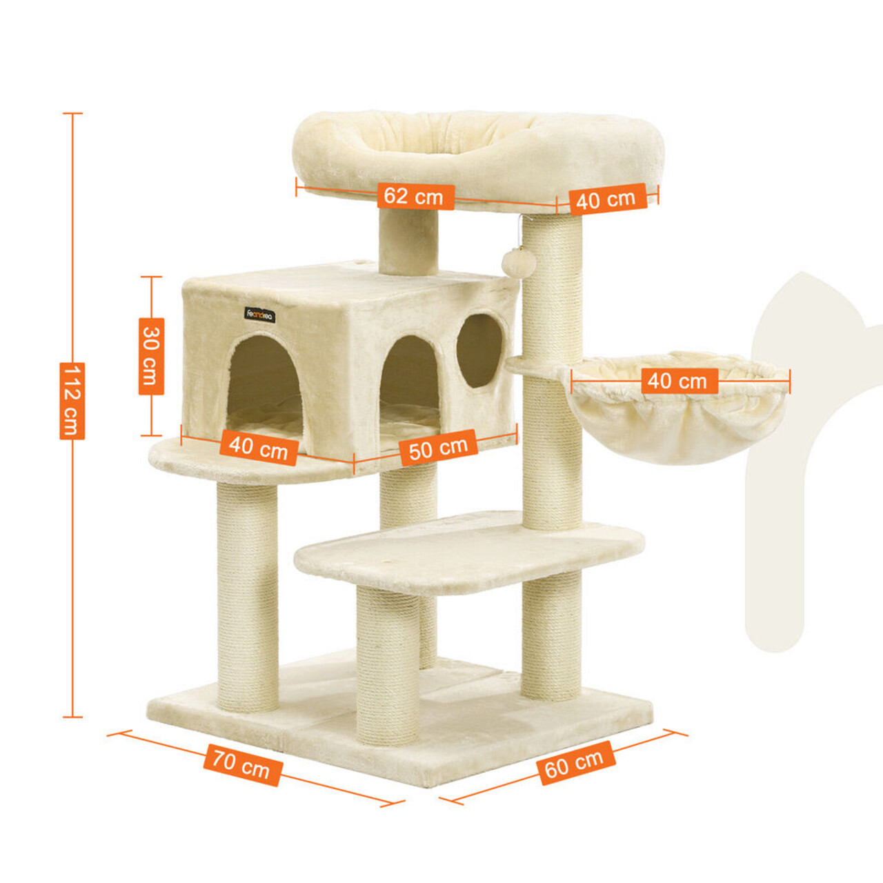 Ansamblu de joaca pisici cu elemente reglabile / arbore pentru pisici cu perna XXL, Feandrea, 70x60x112 cm, PAL/plus/sisal, bej