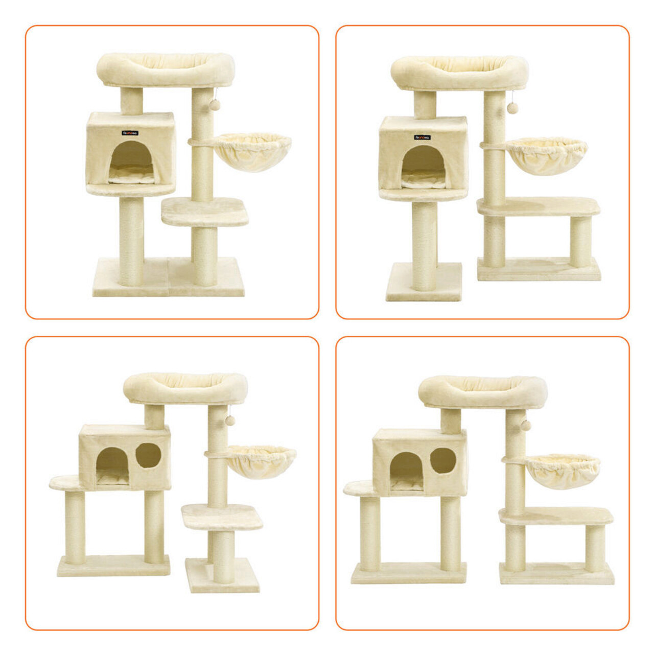 Design cu elemente reglable: Puteti ajusta arborele pentru pisici in diverse pozitii datorita placilor sale mobile. Acest ansamblu de joaca pentru pisici economiseste spatiu si se adapteaza perfect la conditiile din casa dvs.