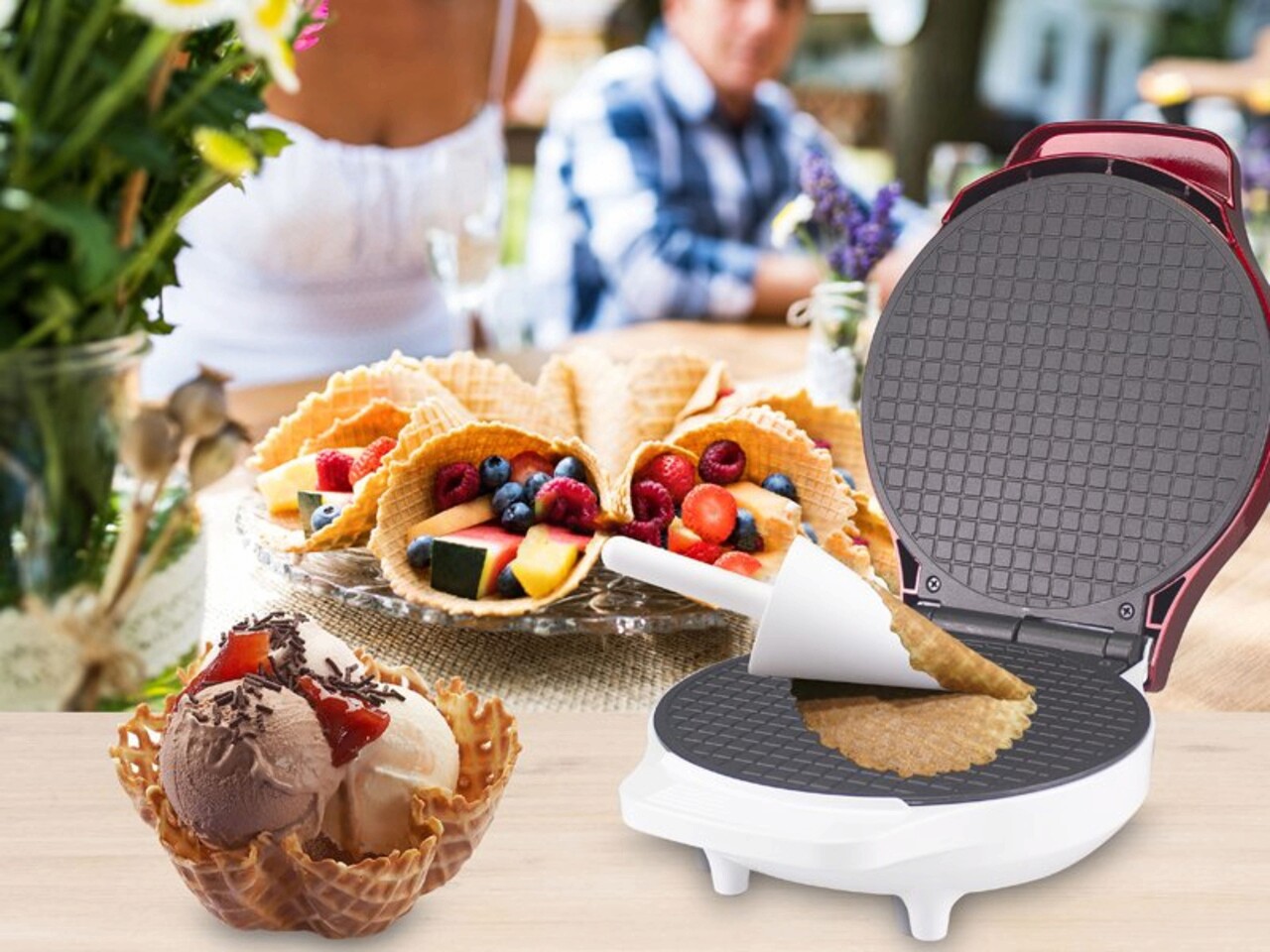 Ideal pentru prepararea conurilor crocante ori cosuletelor de inghetata, gustarilor sarate, vafelor cu cascaval, rulourilor cu ou.