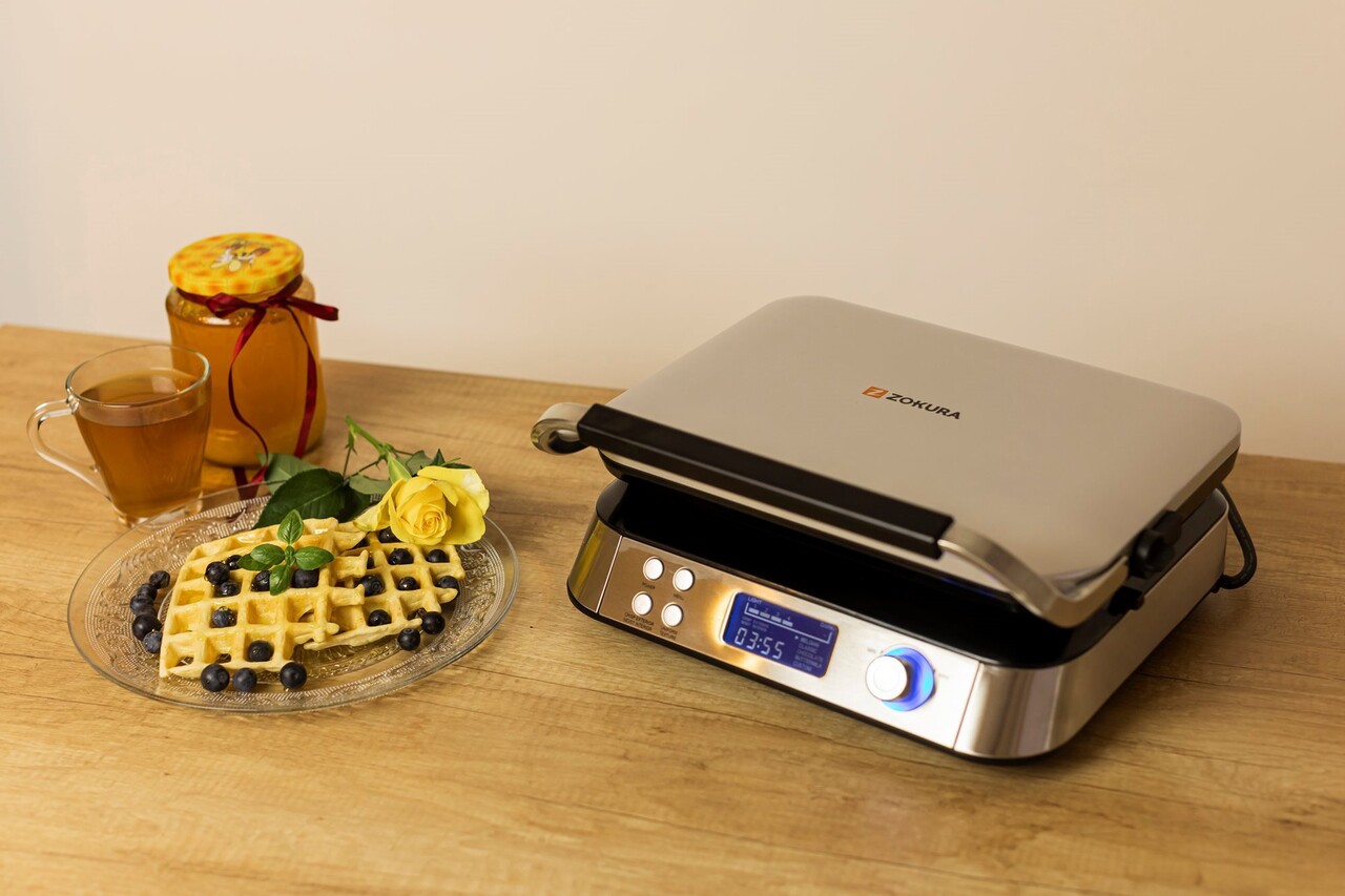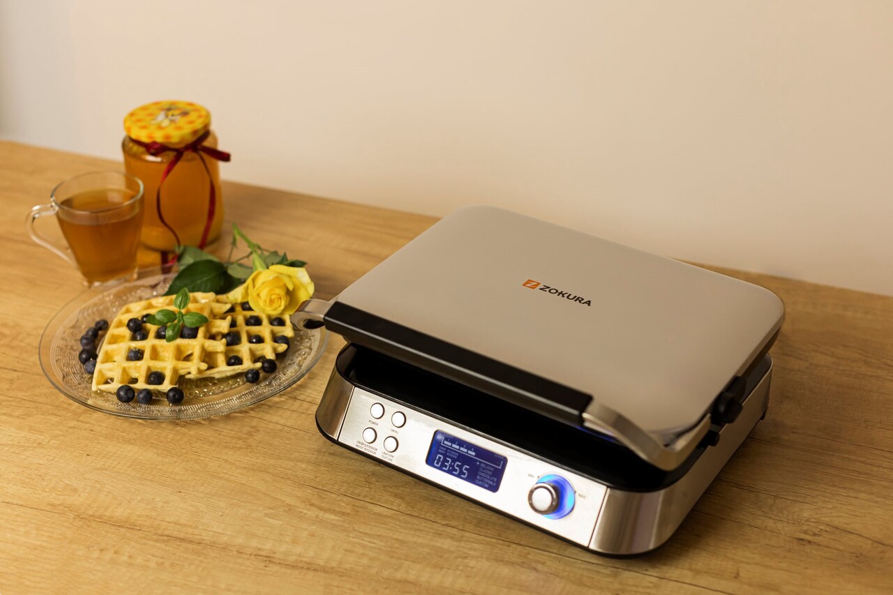 Aparat gofreSmart cu afisaj digital si 5 programe prestabilite, MarcaZokura, Putere 800-1600 W.