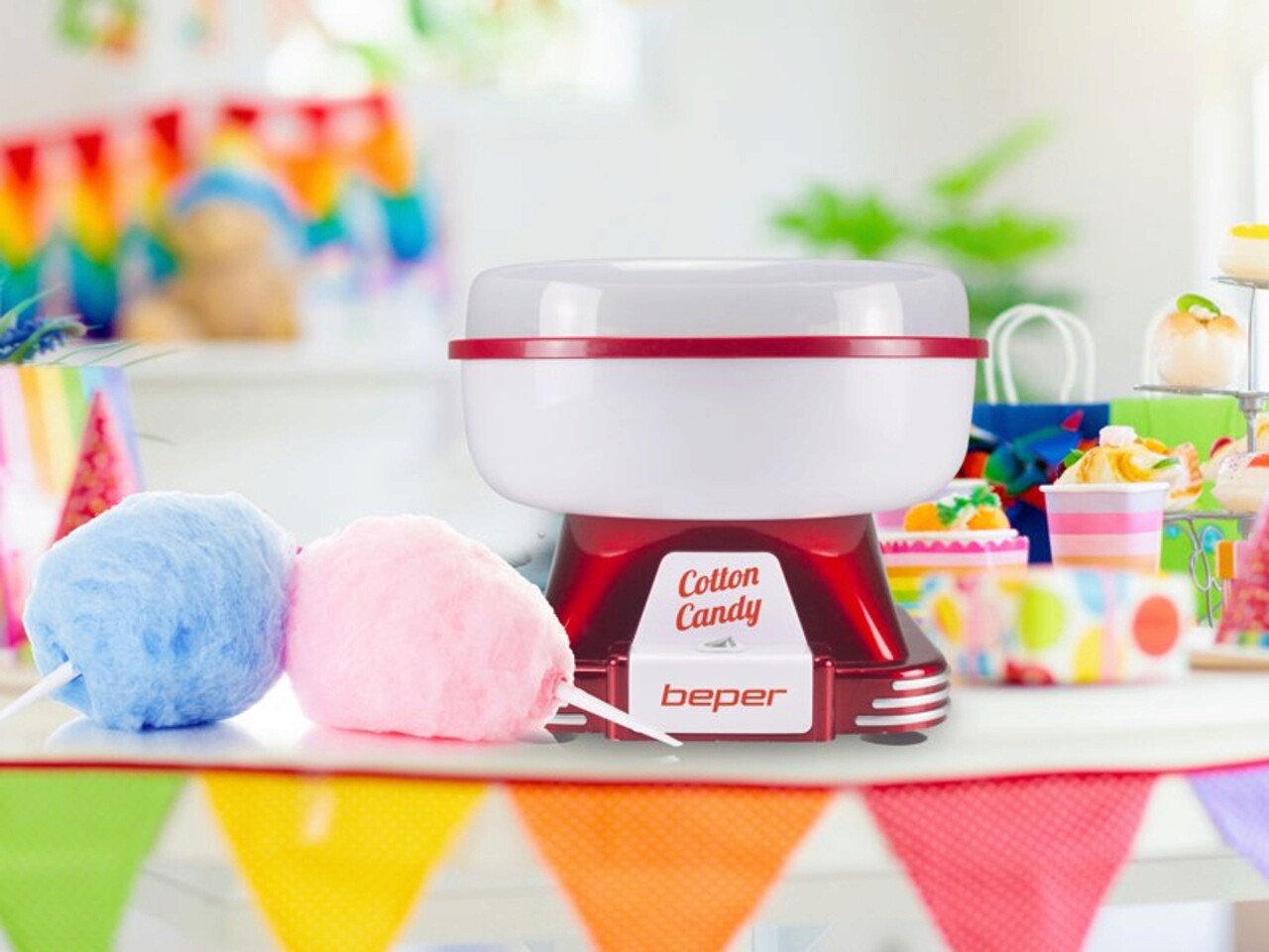 Aparat pentru vata de zahar Beper, 500 W, 29.3x29.3x18.1 cm, rosu/alb