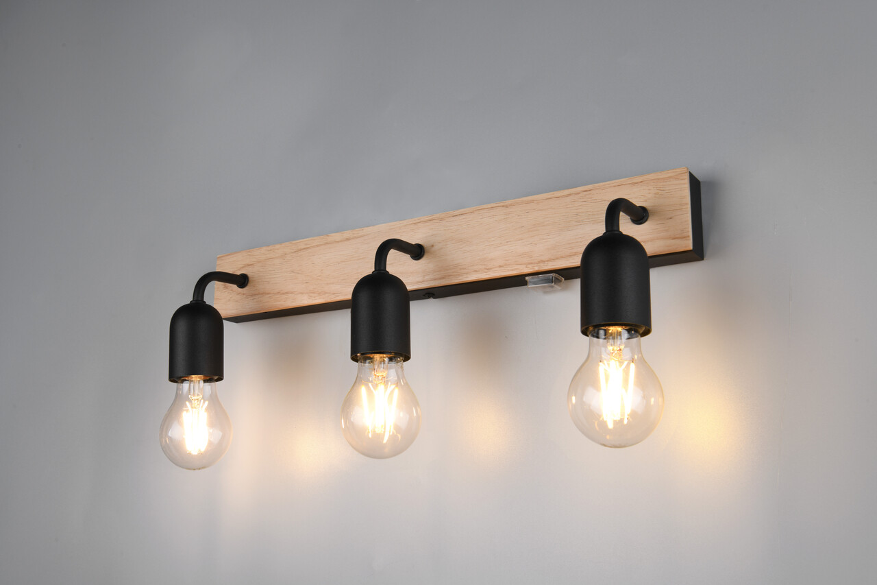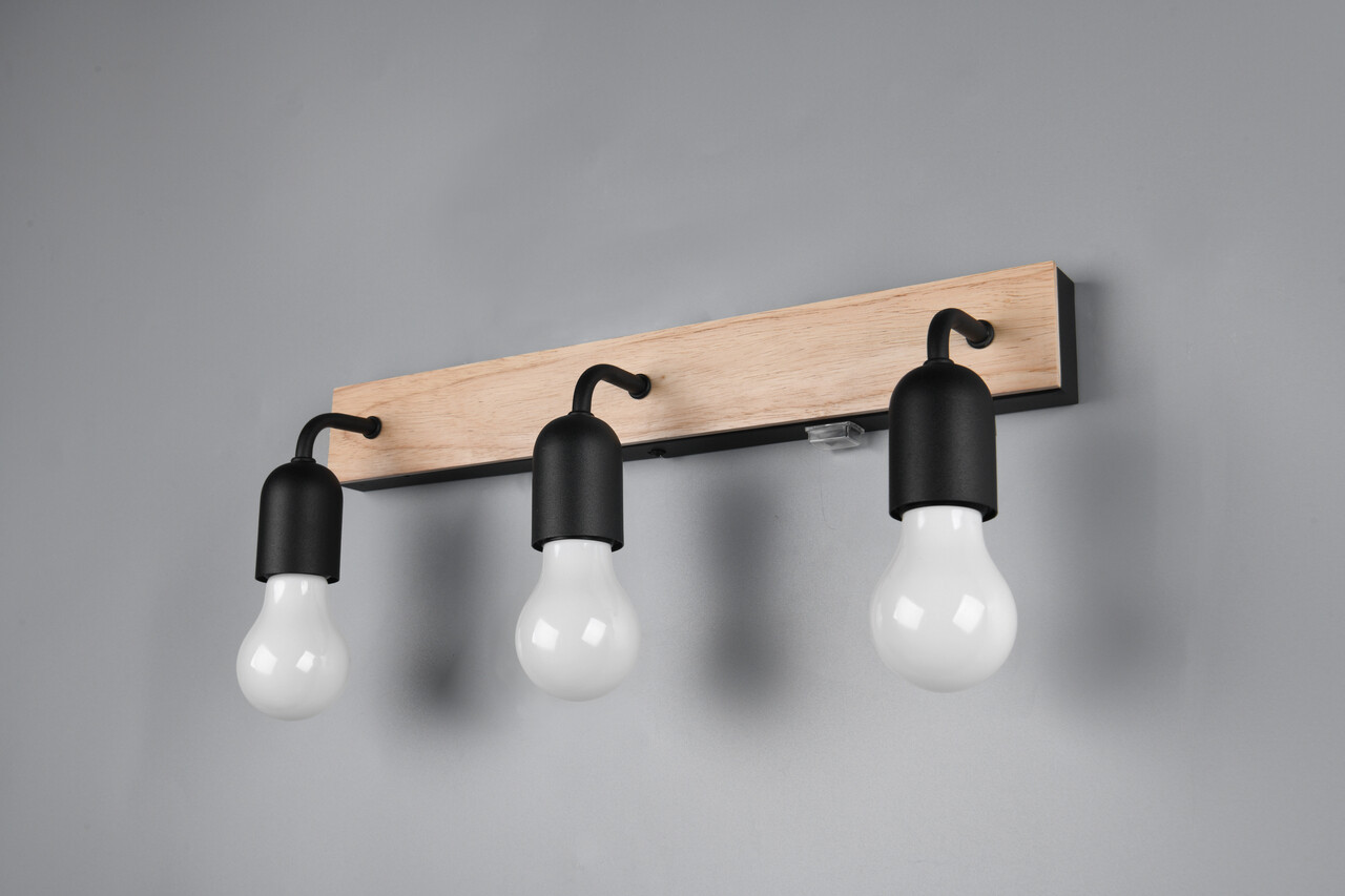 Aplica de perete Arturo, TRIO, 45x11x12.7 cm, 10W, 3x E27, lemn, natur/negru