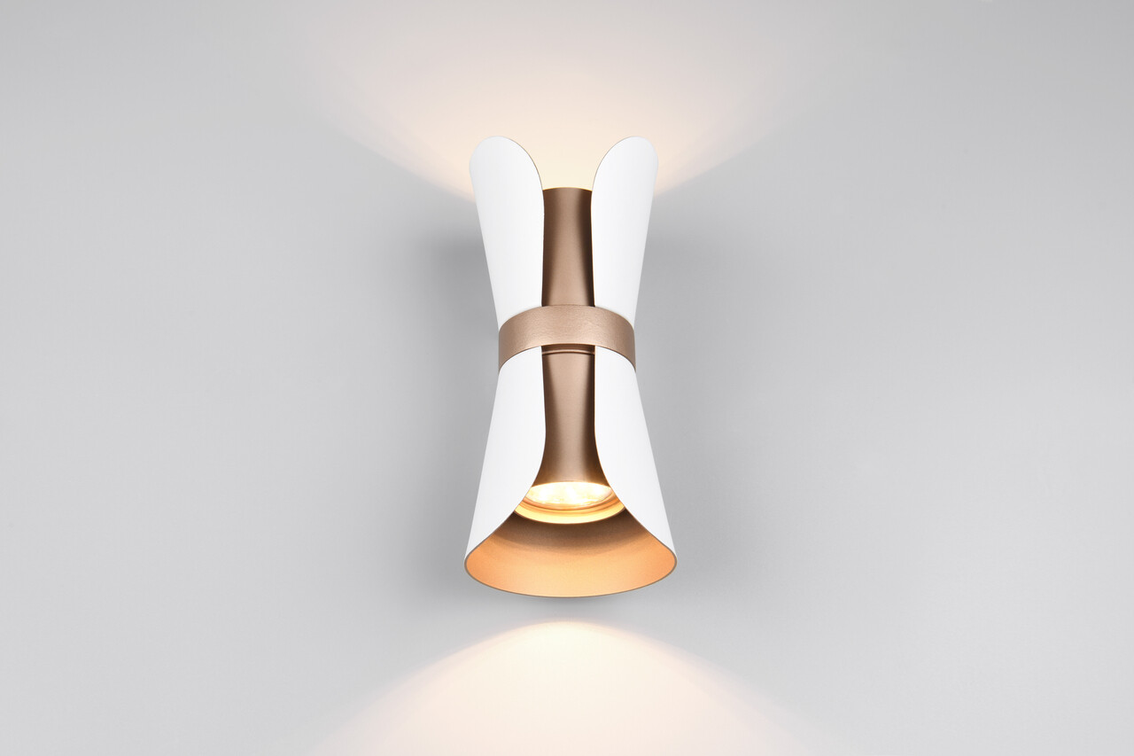 Aplica de perete Coat, TRIO, 10x11x21 cm, 10W, 2x GU10, metal, alb mat/auriu