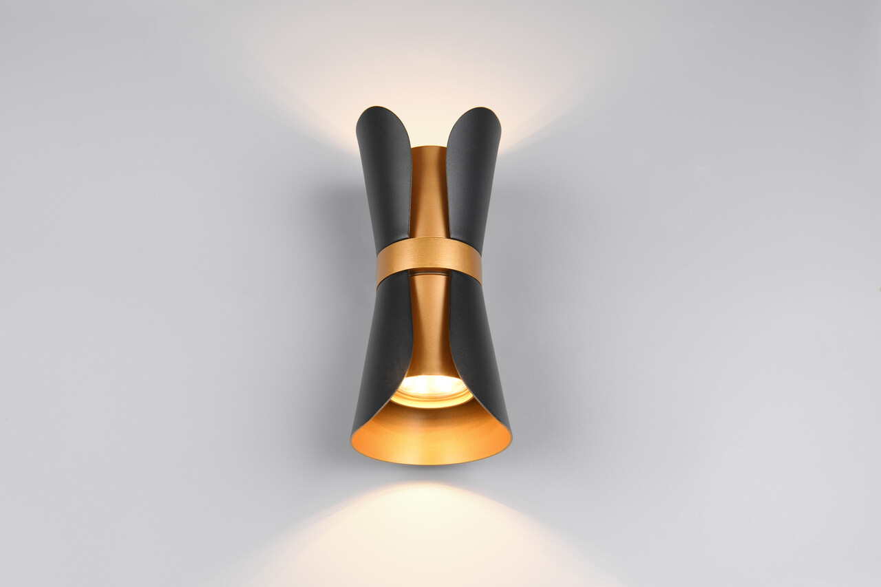 Aplica de perete Coat, TRIO, 10x11x21 cm, 10W, 2x GU10, metal, negru mat/auriu