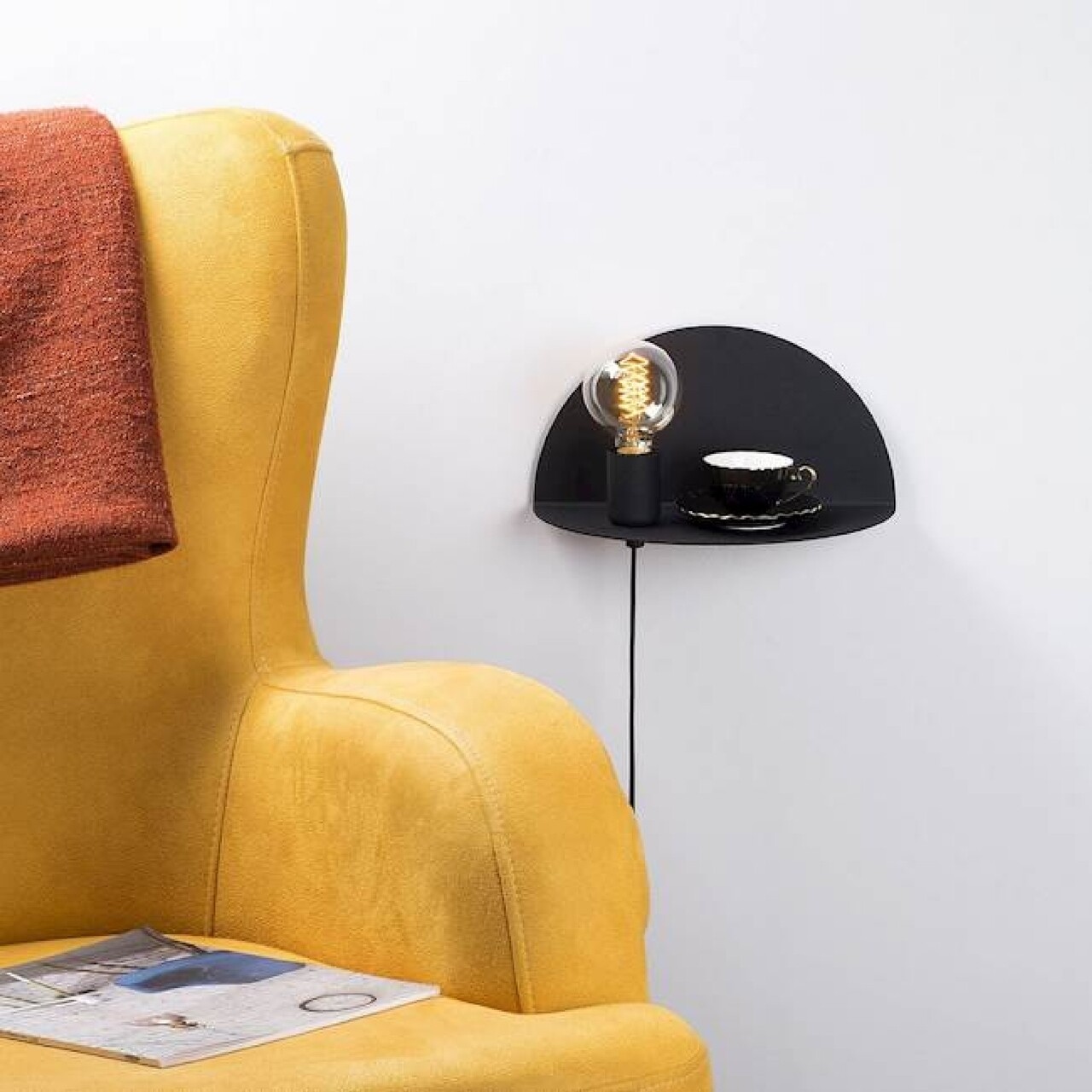 Aplica de perete cu raft Shelfie, Maison in Design, 30 cm, 1 x E27, 100W, negru