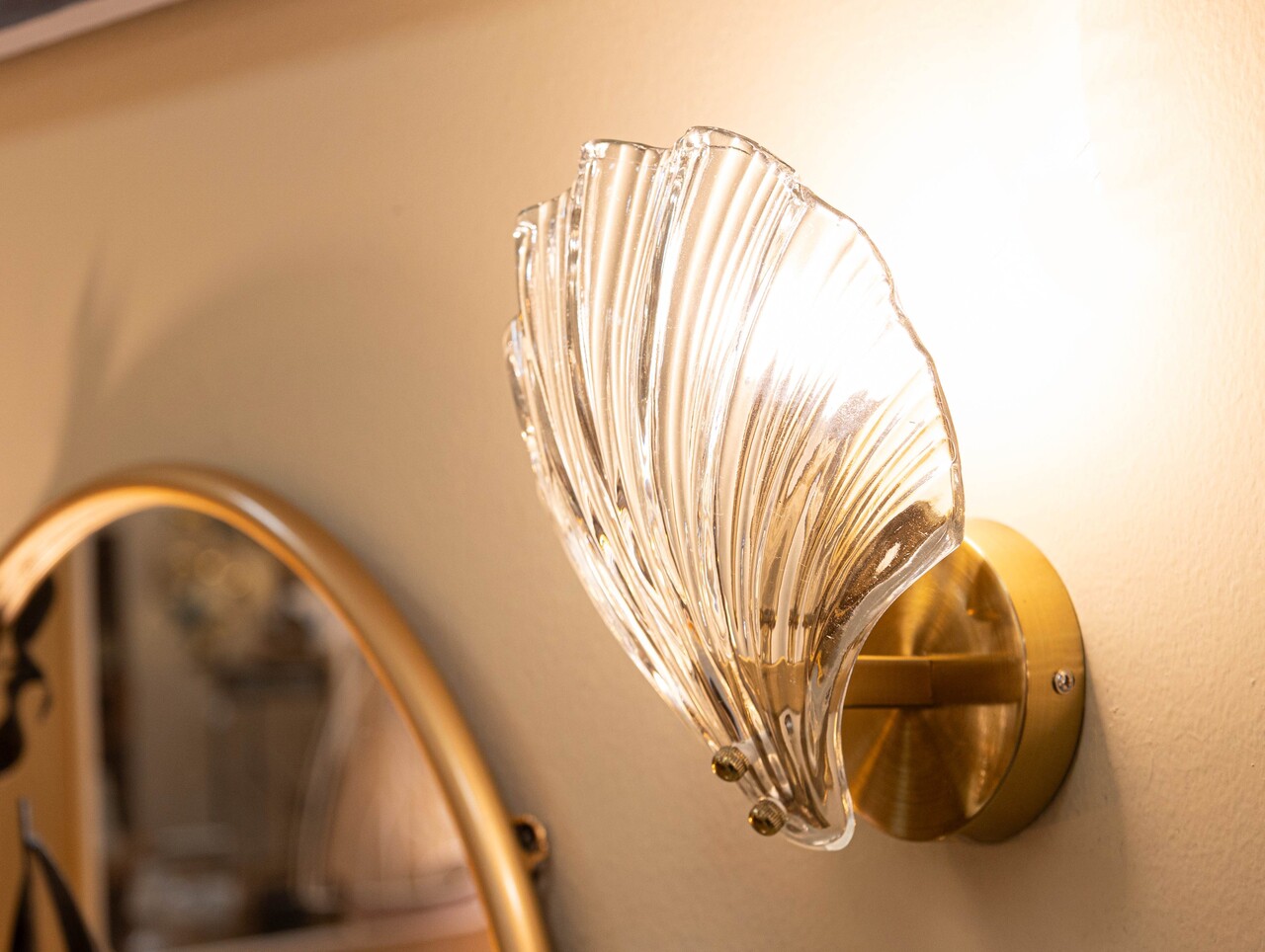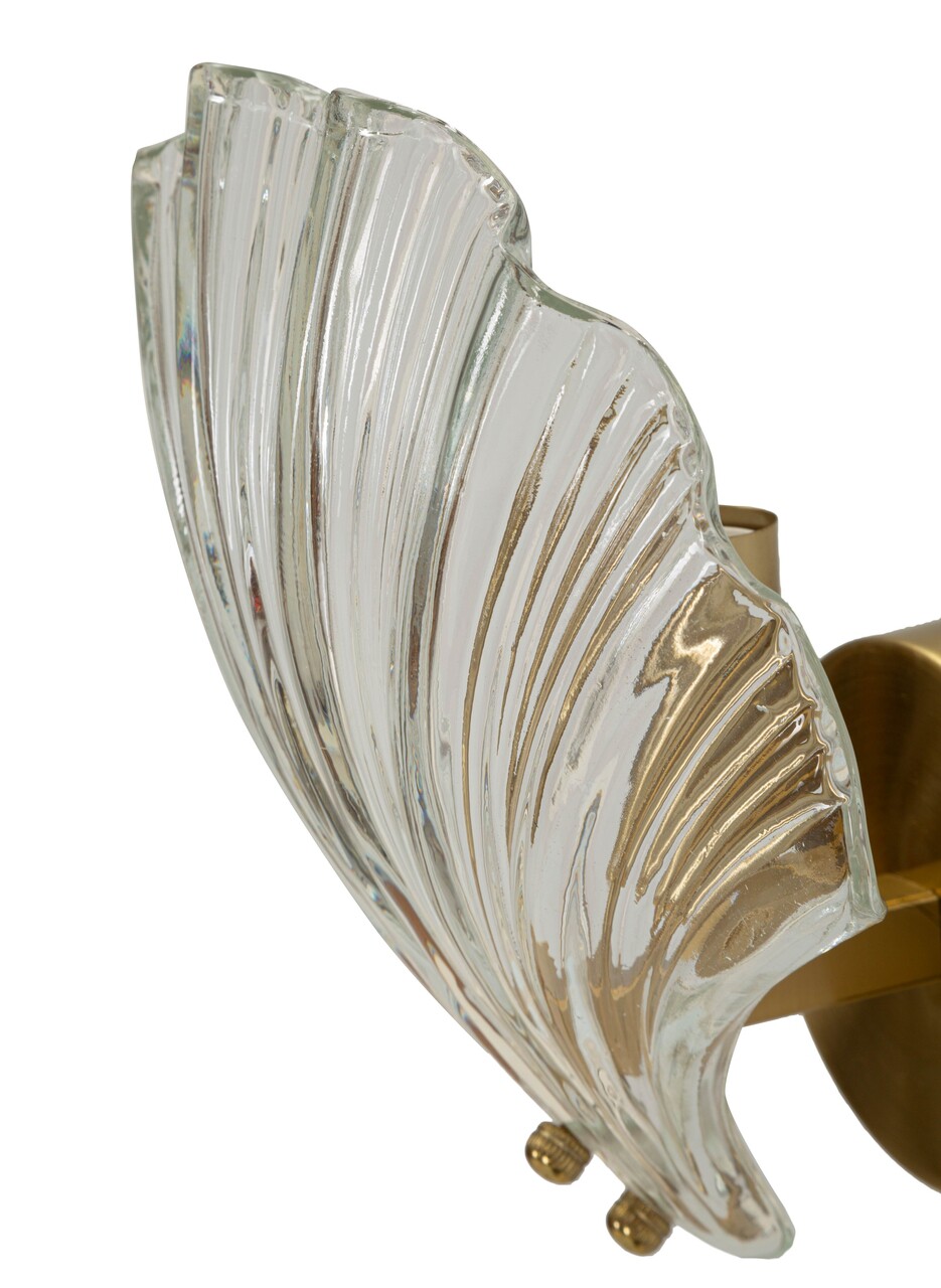 Aplica de perete Da Muro Shell, Mauro Ferretti, 1 x E14, 40W, 20x14x22 cm, sticla/fier, auriu/natural