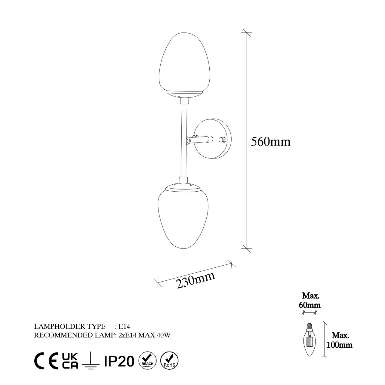 Max. Dimensiunea becului: Diametru: 6 Înălțime: 9 cm