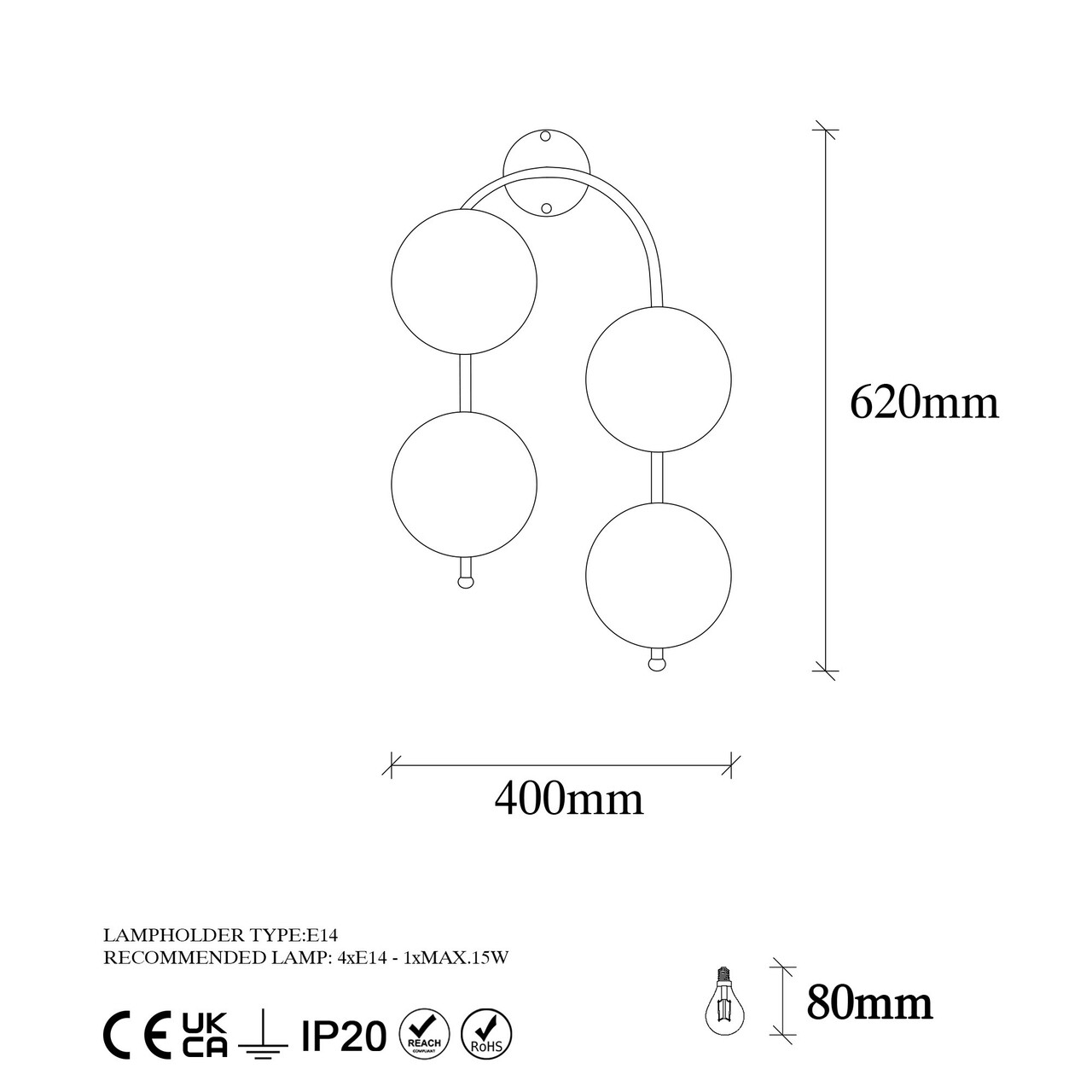Aplica de perete, Fulgor, 942FLG2114, Metal, Negru / Crem