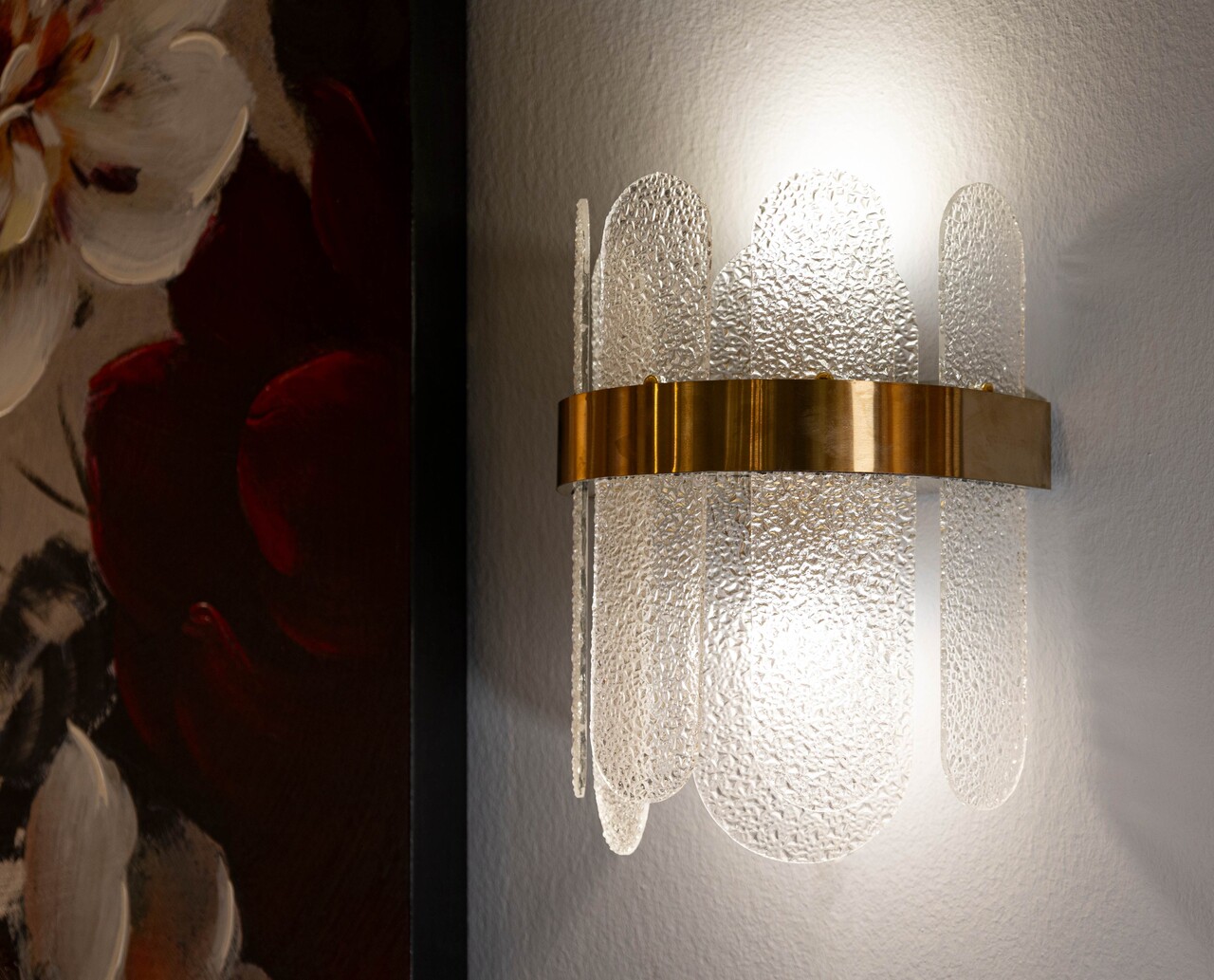 Aplica de perete Gris, Mauro Ferretti, 2 x E14, 40W, 20x14x28 cm, sticla/fier, auriu/alb