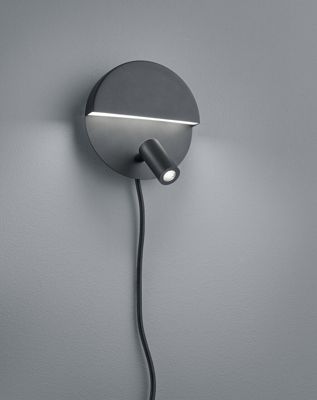 Aplica de perete Mario, TRIO, 10.5x16x16 cm, 6W / 2.3W, 2x SMD, metal, negru mat