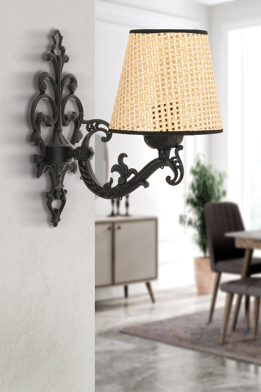 Aplica de perete, Opviq, 390FLH2331, Negru / Stejar