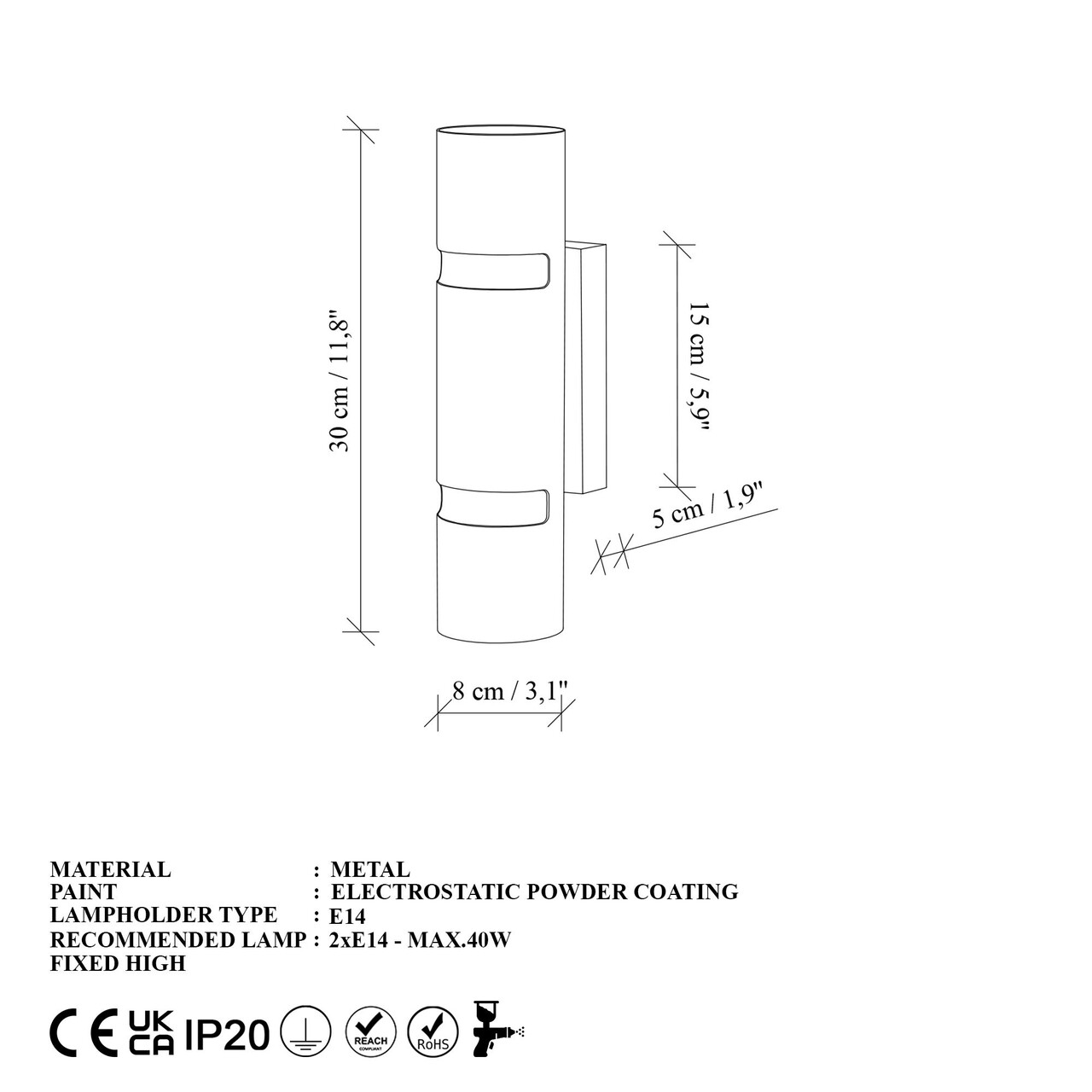 Tip soclu: 2 x E 14 Max 40 W