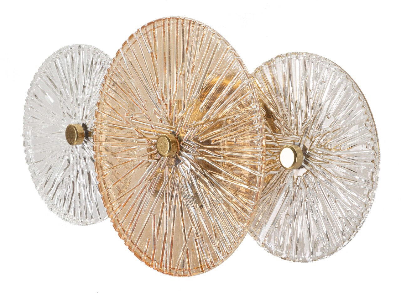 Aplica de perete Osaka, Mauro Ferretti, 2 x E14, 20W, 42x8x20 cm, fier/sticla, auriu/maro/transparent