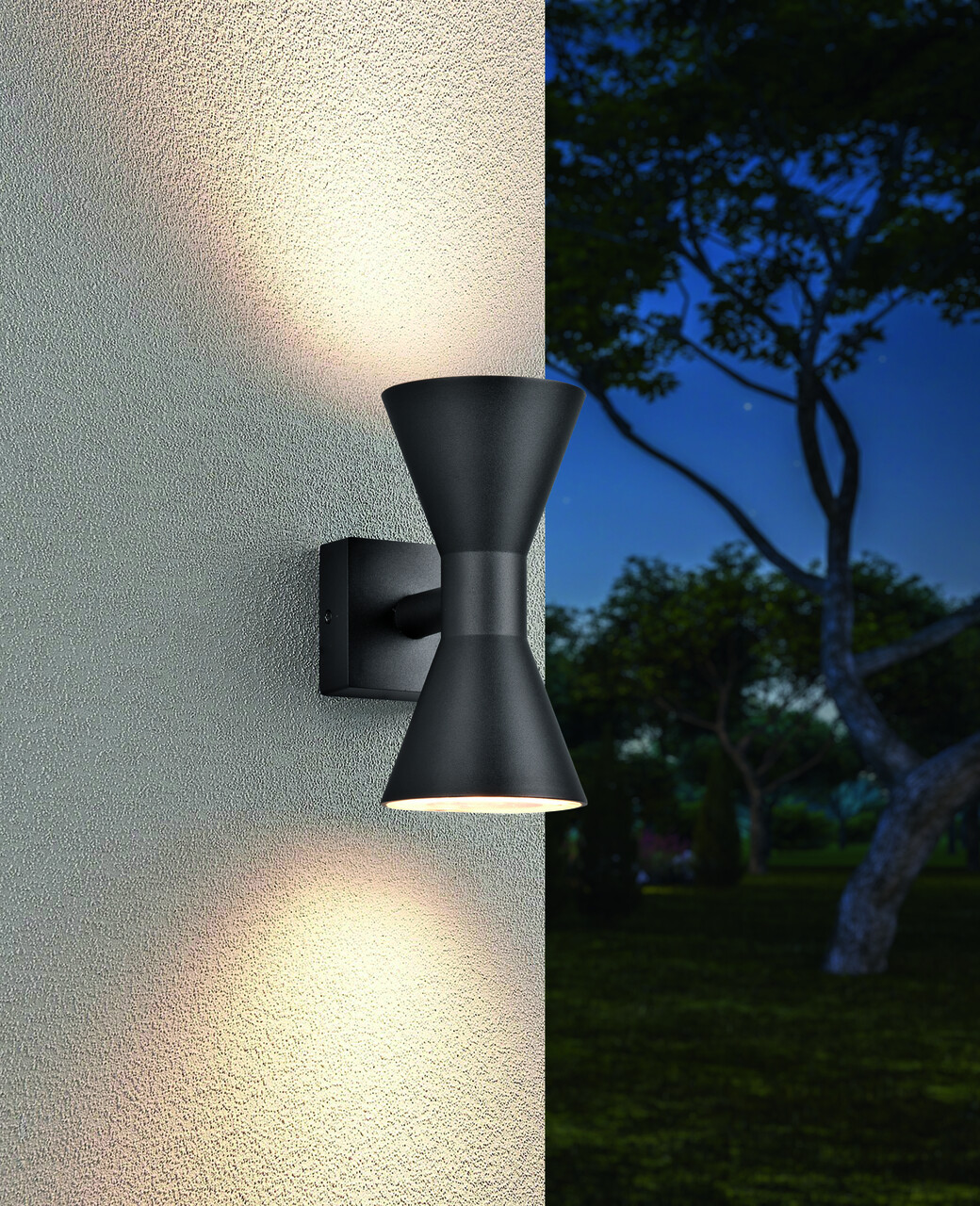 Aplica de perete pentru exterior Ardas, TRIO, 7.6x15x20 cm, 10W, 2x GU10, aluminiu turnat, negru mat