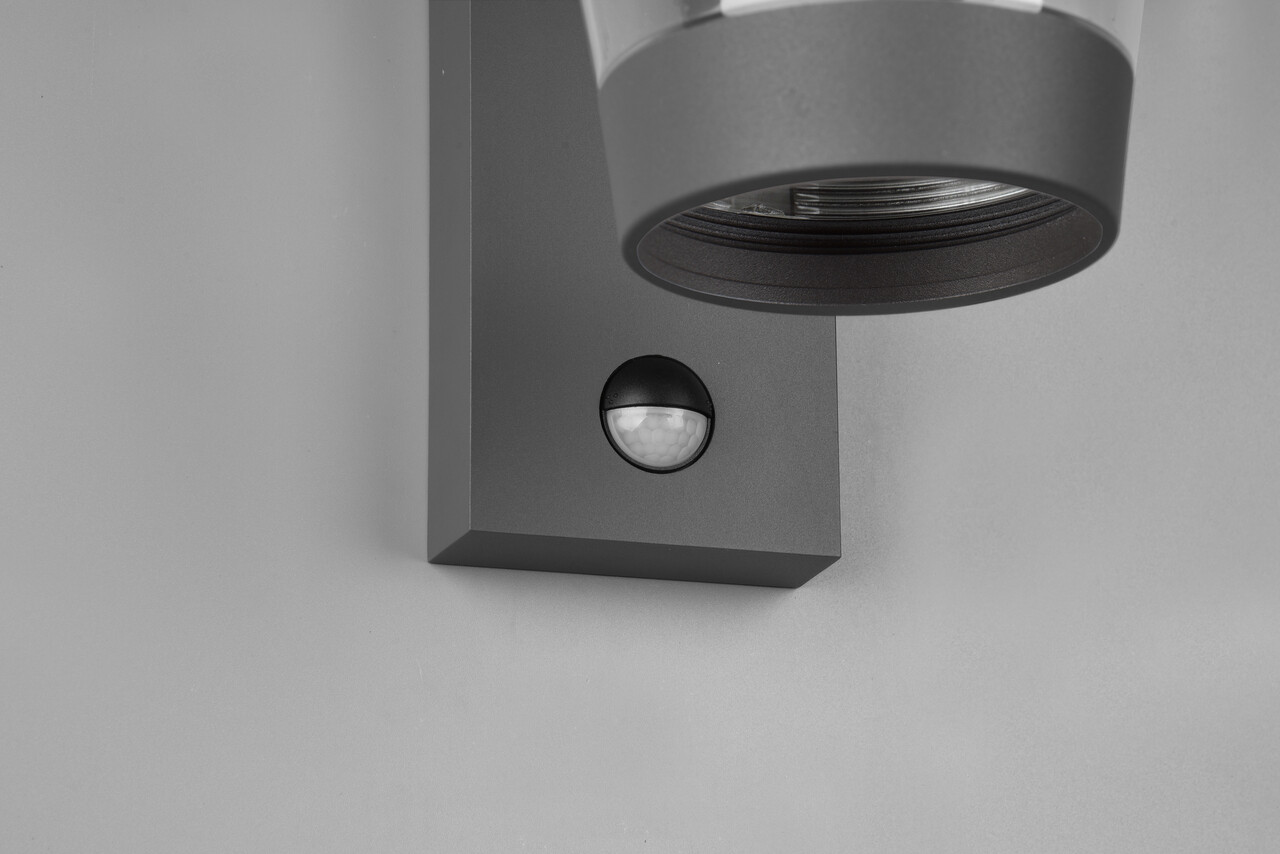 Aplica de perete pentru exterior cu senzor Cavado, TRIO, 16x28 cm, 40W, 1x E27, aluminiu, antracit