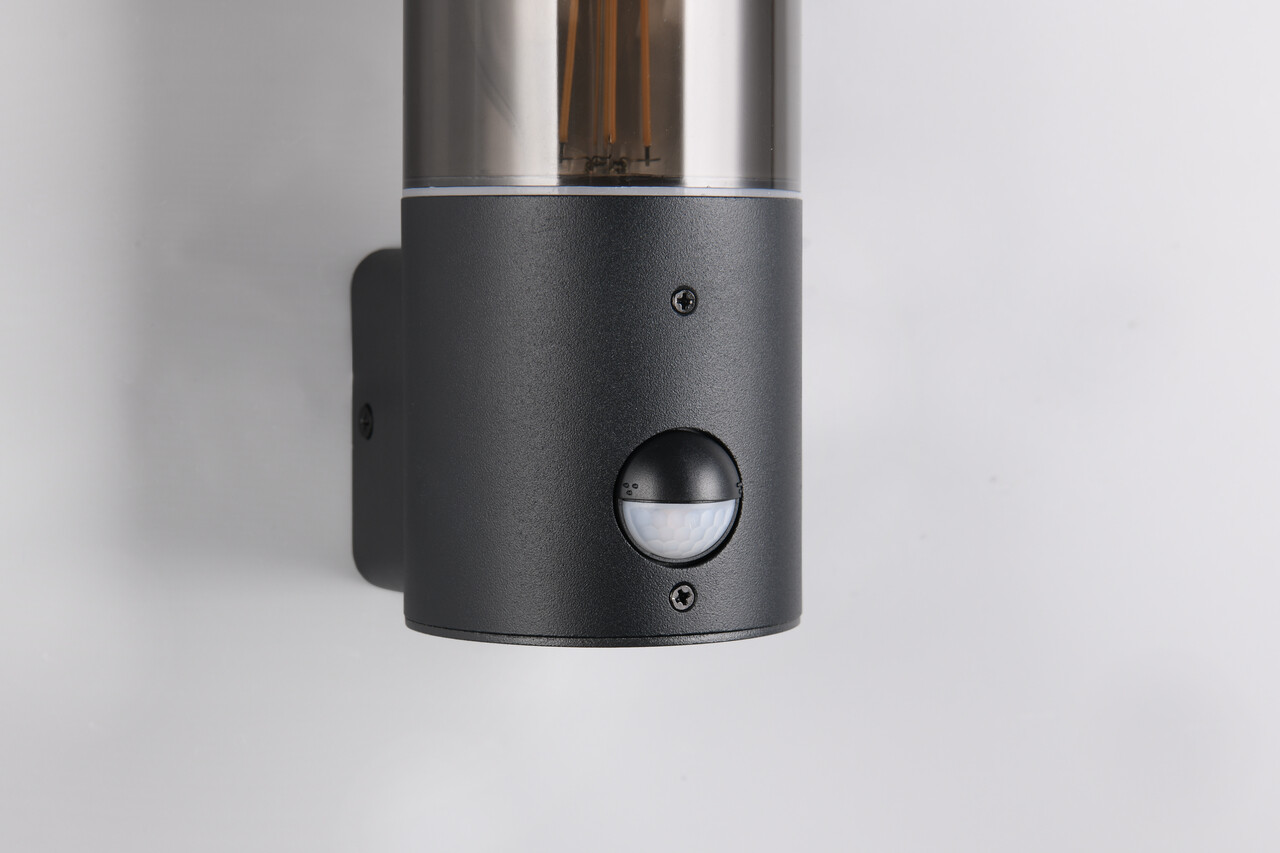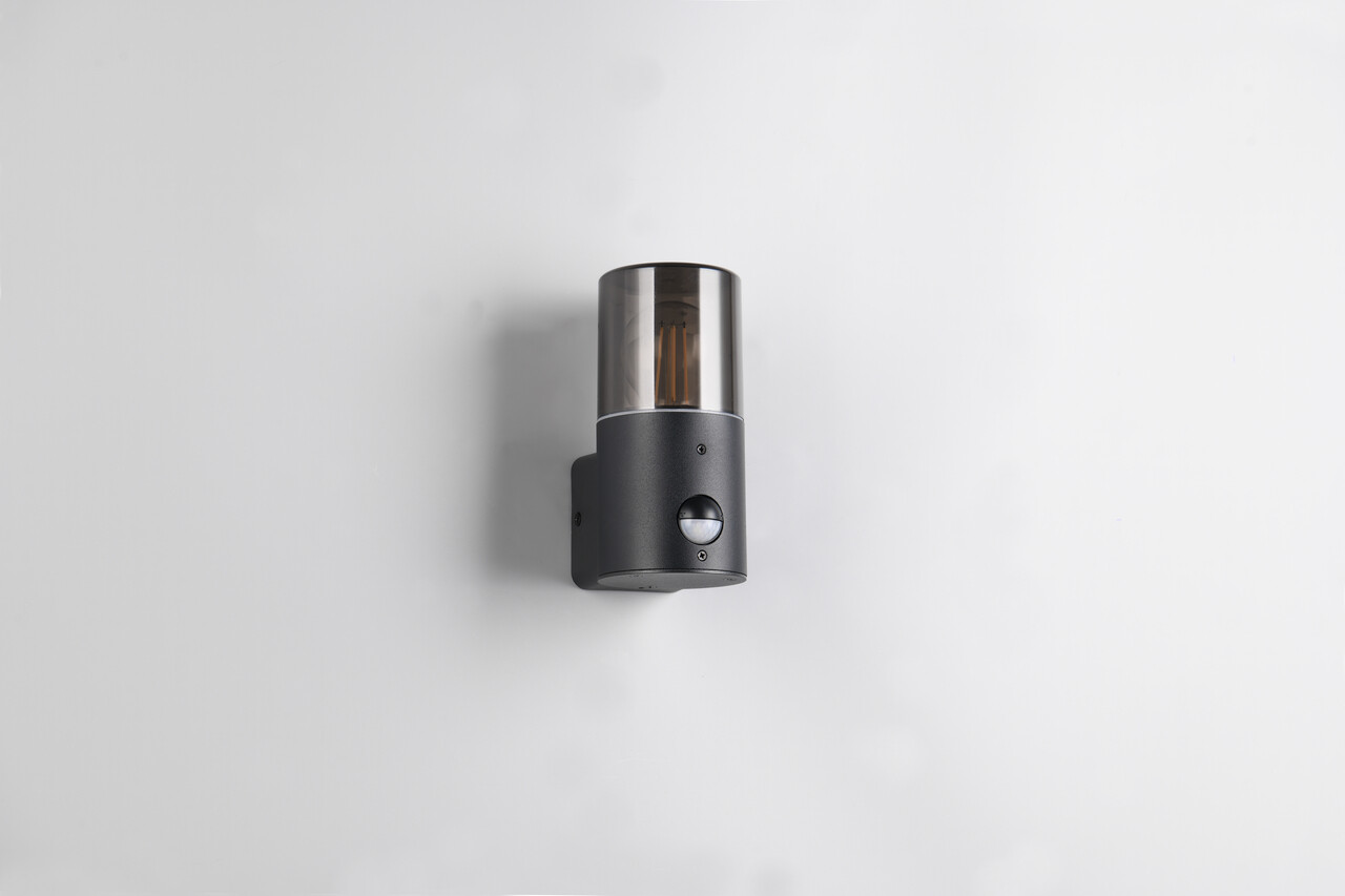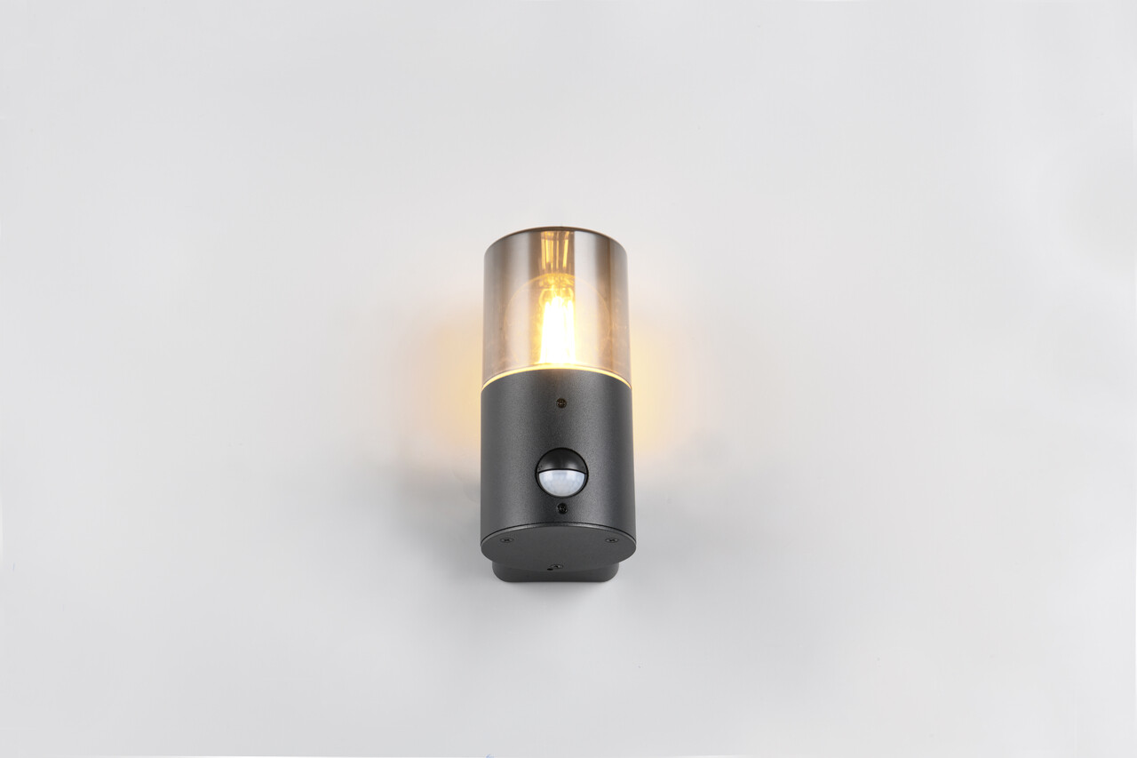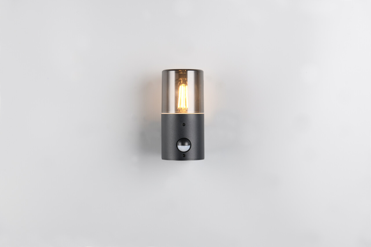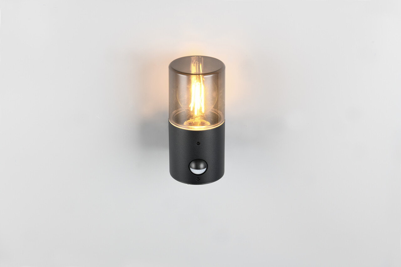 Aplica de perete pentru exterior cu senzor Hoosic, TRIO, 8.5x11.8x17.5 cm, 28W, 1x E27, aluminiu, negru mat