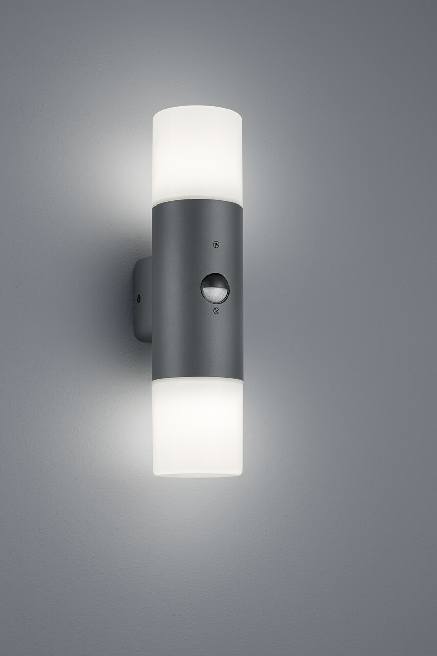 Aplica de perete pentru exterior cu senzor Hoosic, TRIO, 8.5x11.8x33 cm, 28W, 2x E27, aluminiu, antracit