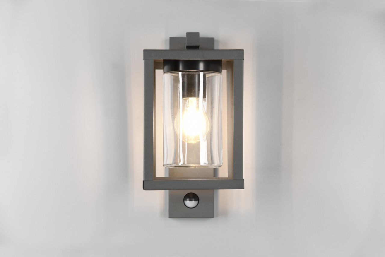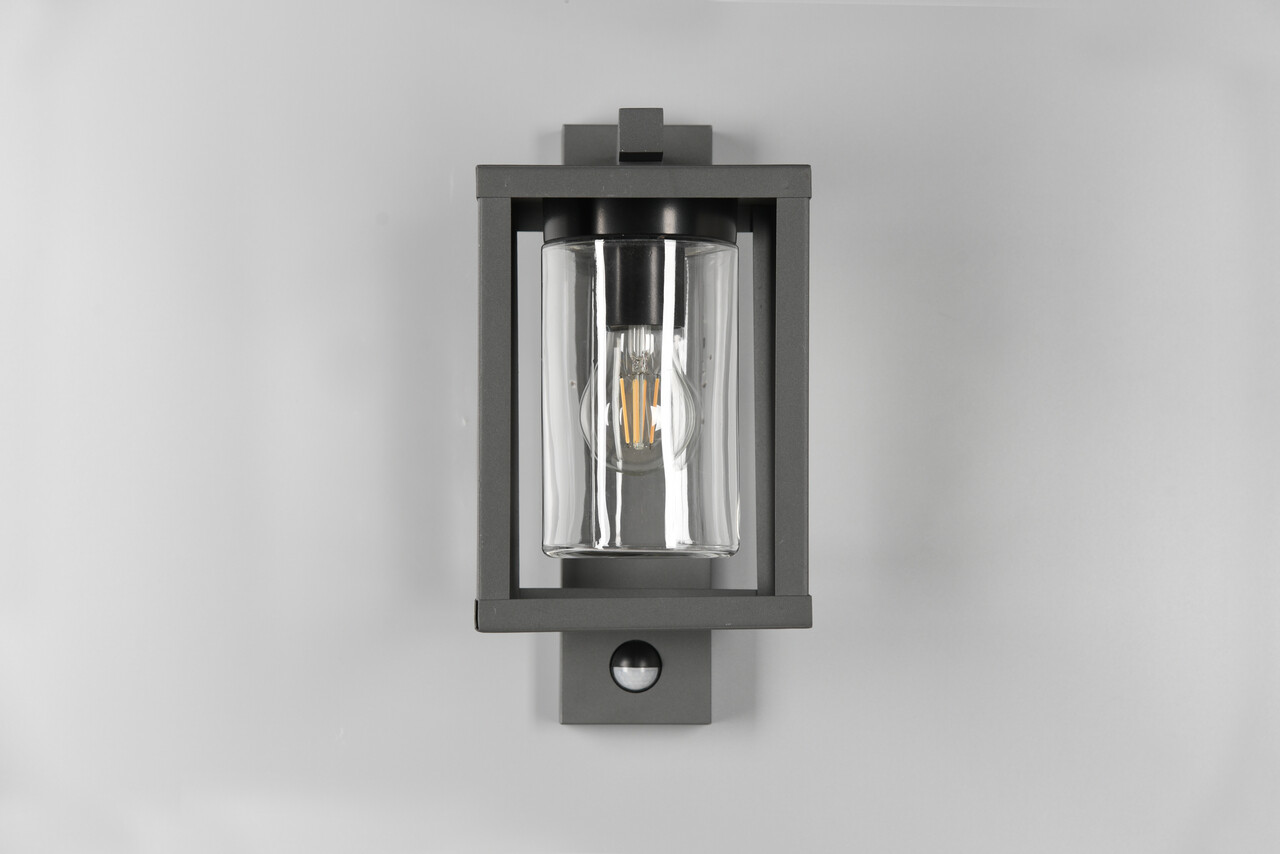 Aplica de perete pentru exterior cu senzor Lunga, TRIO, 16x33.5 cm, 40W, 1x E27, metal, antracit