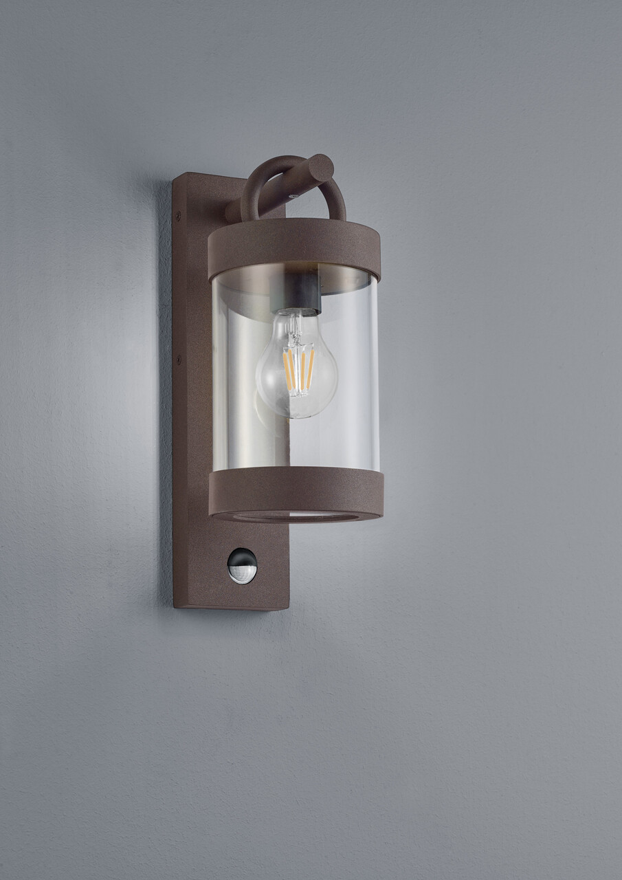 Aplica de perete pentru exterior cu senzor Sambesi, TRIO, 12.5x33 cm, 28W, 1x E27, aluminiu, ruginiu