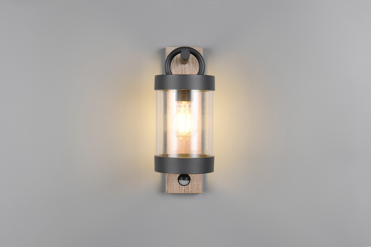Aplica de perete pentru exterior cu senzor Sambesi, TRIO, 12.5x33 cm, 28W, 1x E27, aluminiu, antracit/natur