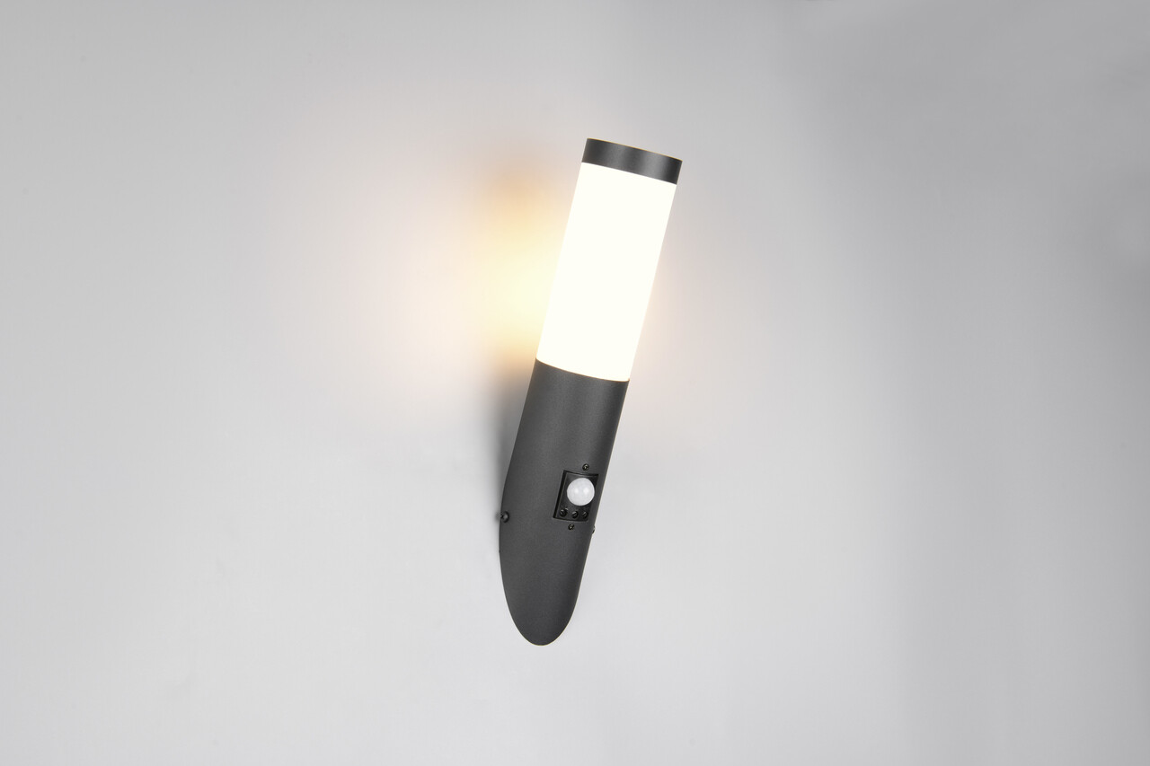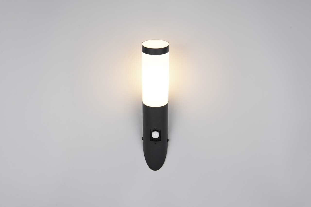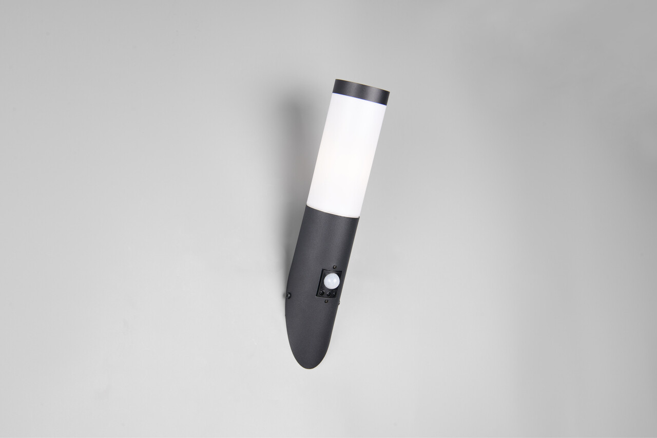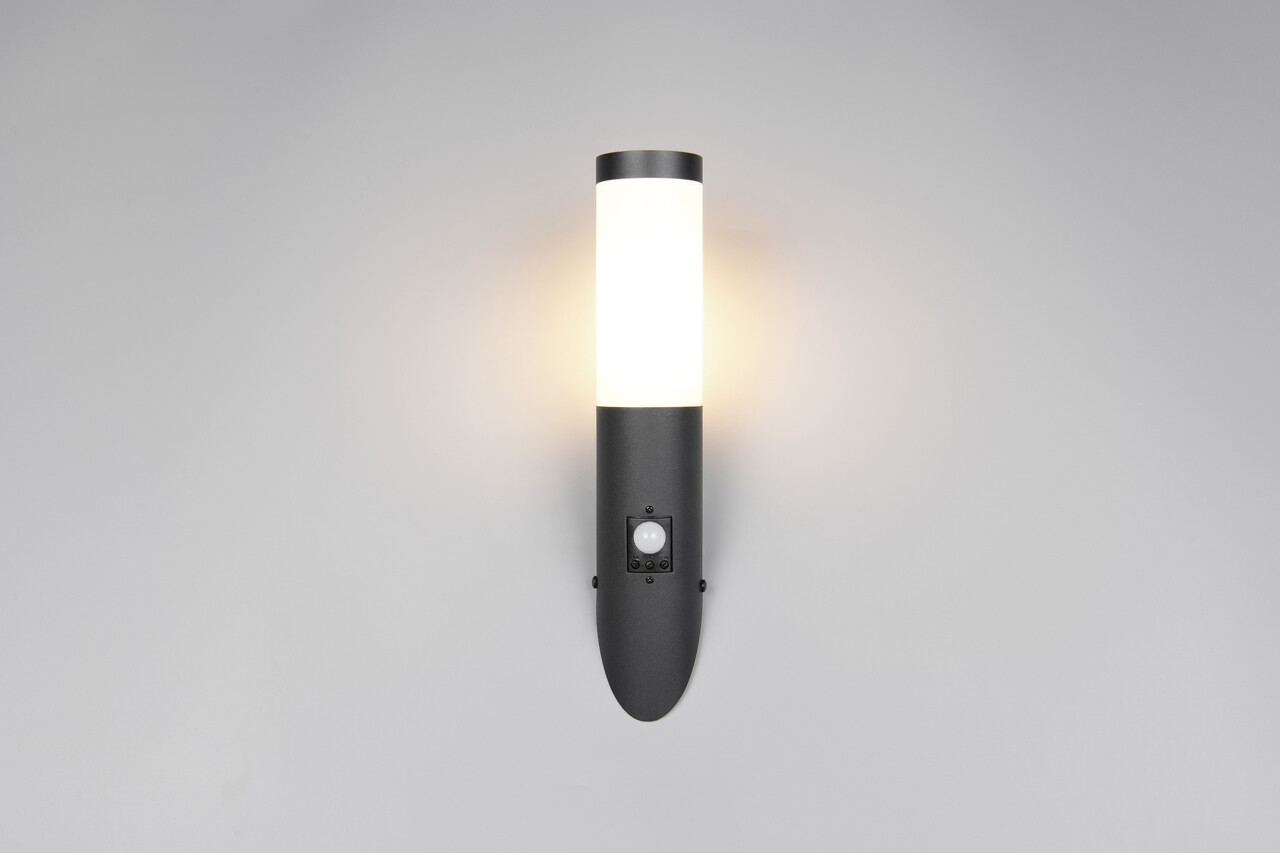 Aplica de perete pentru exterior cu senzor Trioto, TRIO, 7.5x17x39 cm, 25W, 1x E27, inox, negru mat/alb