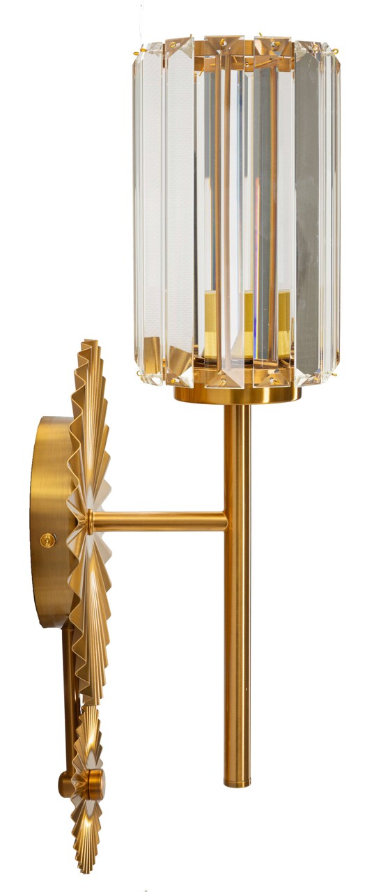 Aplica de perete Tirana, Mauro Ferretti, 2 x E14, 20W, 20x17x47 cm, fier/sticla, auriu/transparent