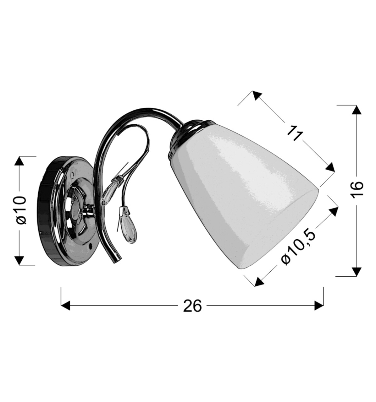 Aplica de perete Ursella, Candellux, 26 x 16 cm, 1 x E14, 40W, crom/alb