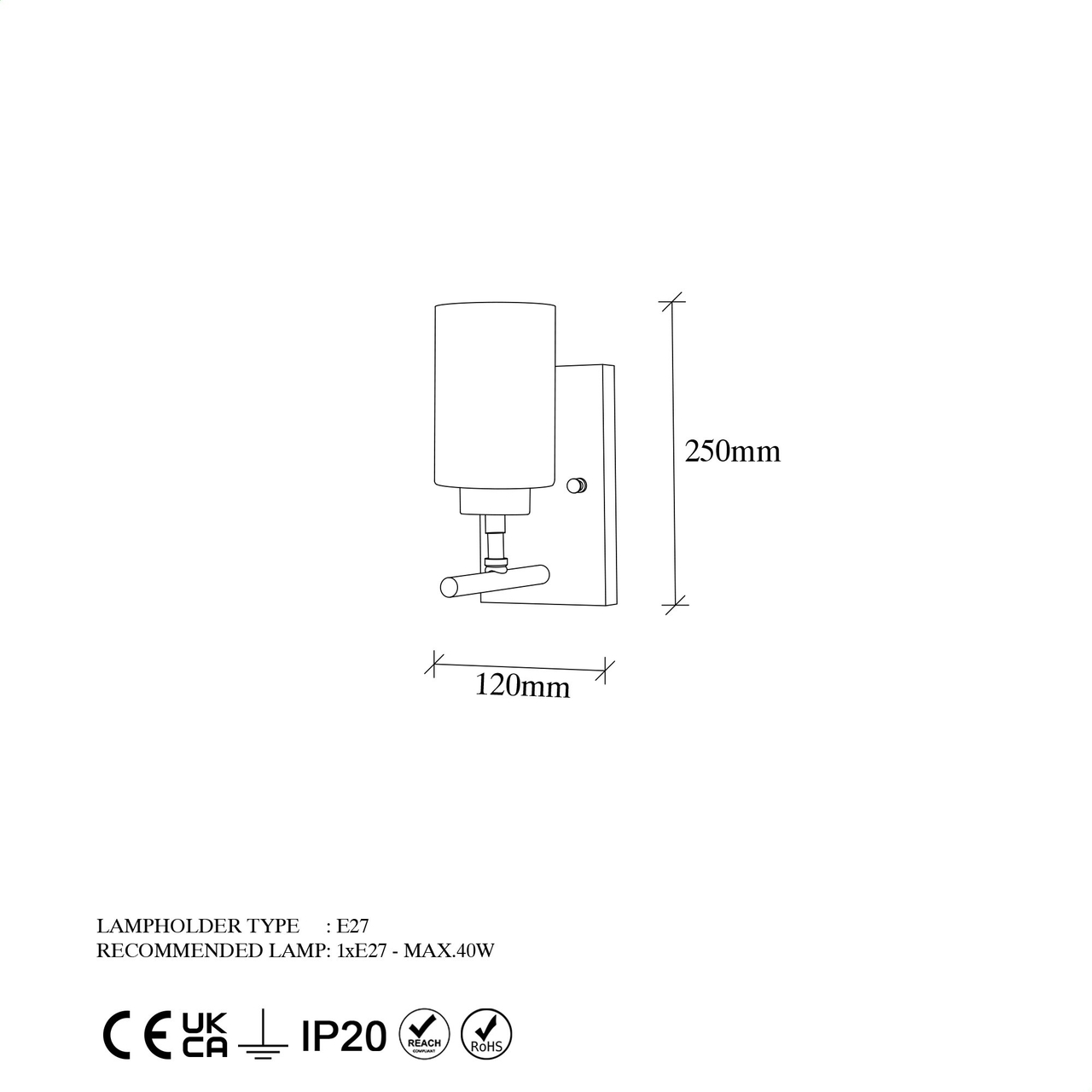 Aplica de perete, Yensuk - 13120, Fulgor, 12 x 17 x 25 cm, 1 x E27, 40W, auriu