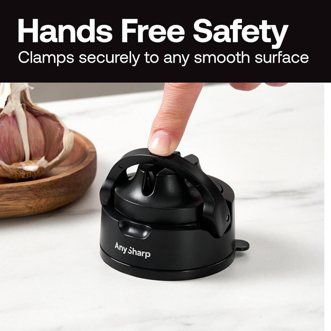 Baza ascutitorului de cutite AnySharp Evo este dotata cu o Ventuza PowerGrip II Imbunatatita, Cu o putere mai mare de aspiratie, Astfel ca se fixeaza in siguranta pe orice suprafata neteda fara a fi necesare unelte.